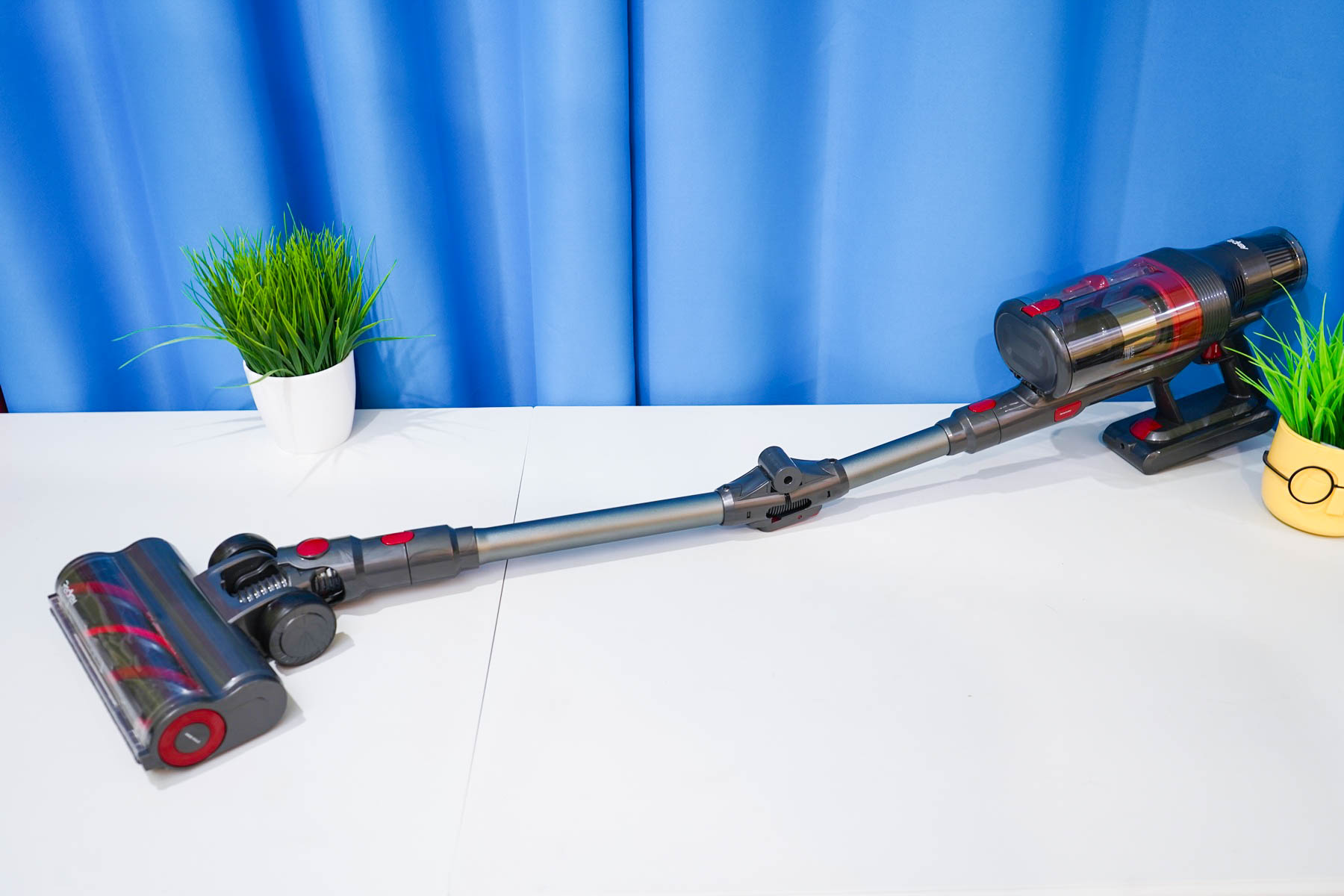 Вот так выглядит пылесос Redkey F11 в сборе со штангой и универсальной насадкой. Стоит отметить, что пылесос довольно легкий.