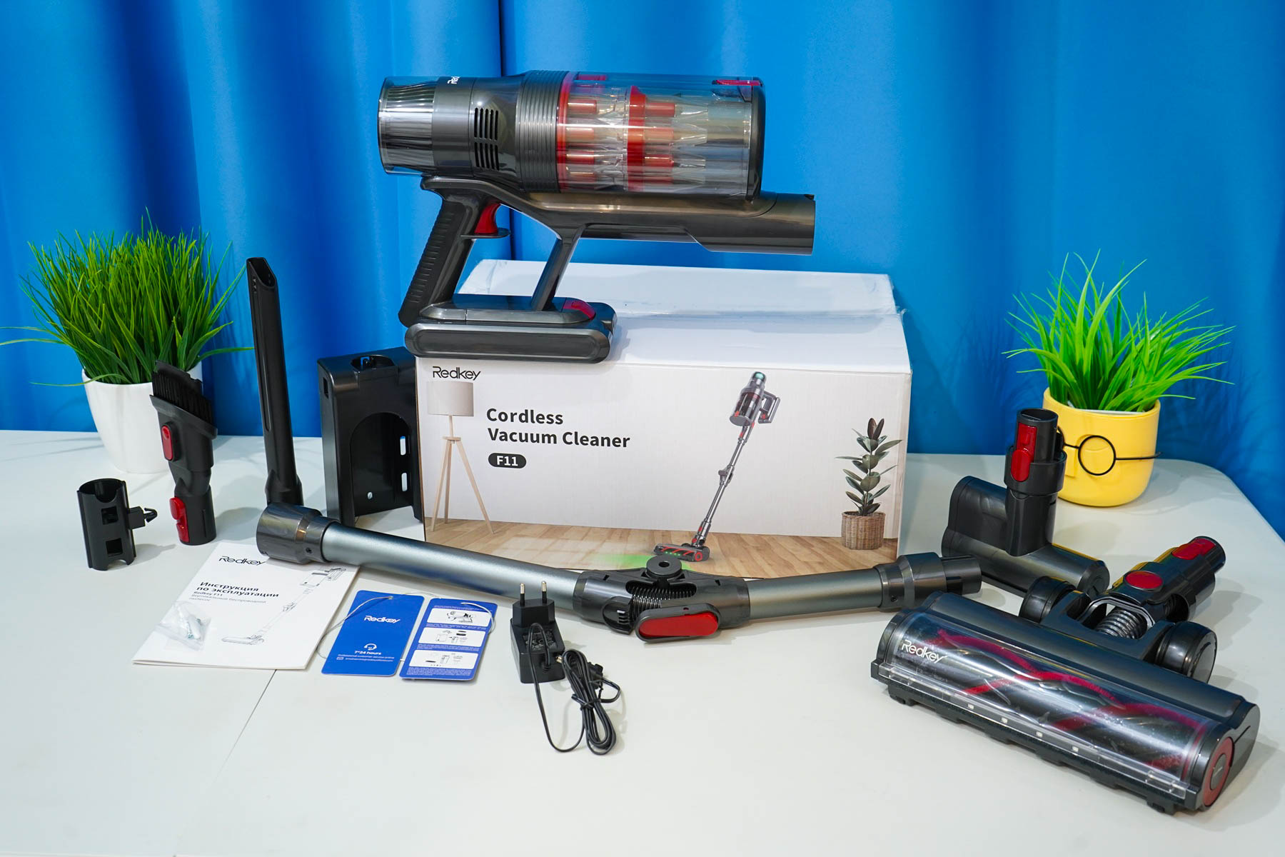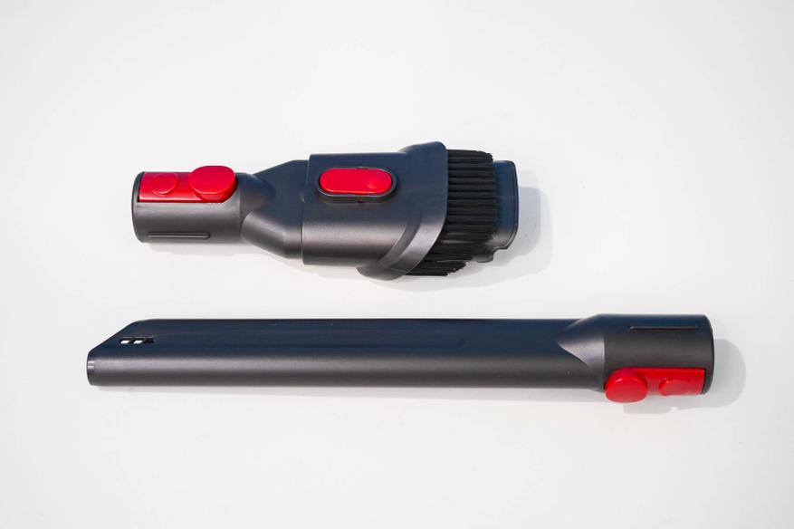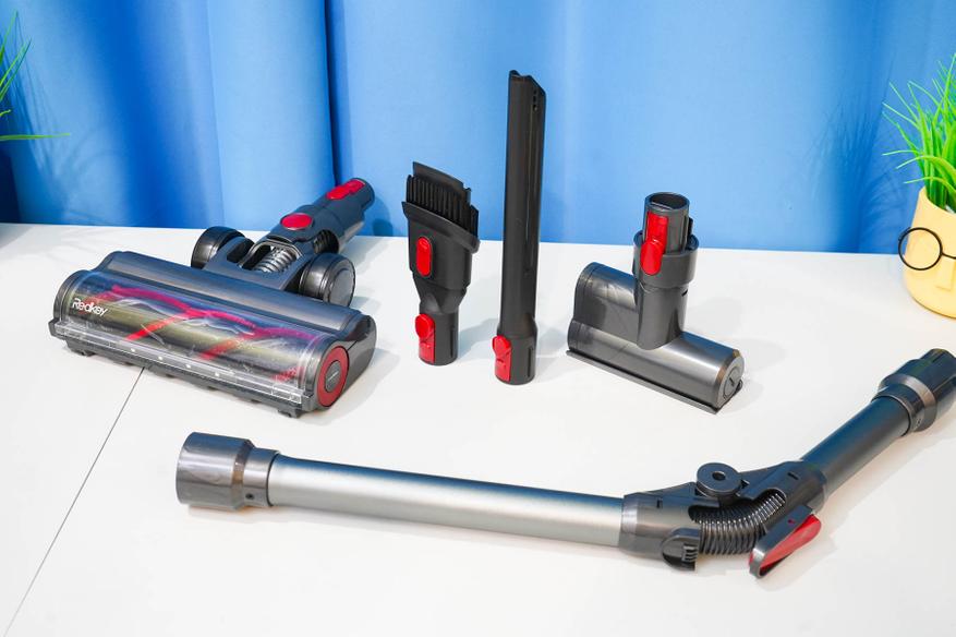 В комплекте Redkey F11 имеется сразу четыре насадки, позволяющих выполнять практически все типы сухой уборки, включая уборку мебели и уборку в труднодоступных уголках: