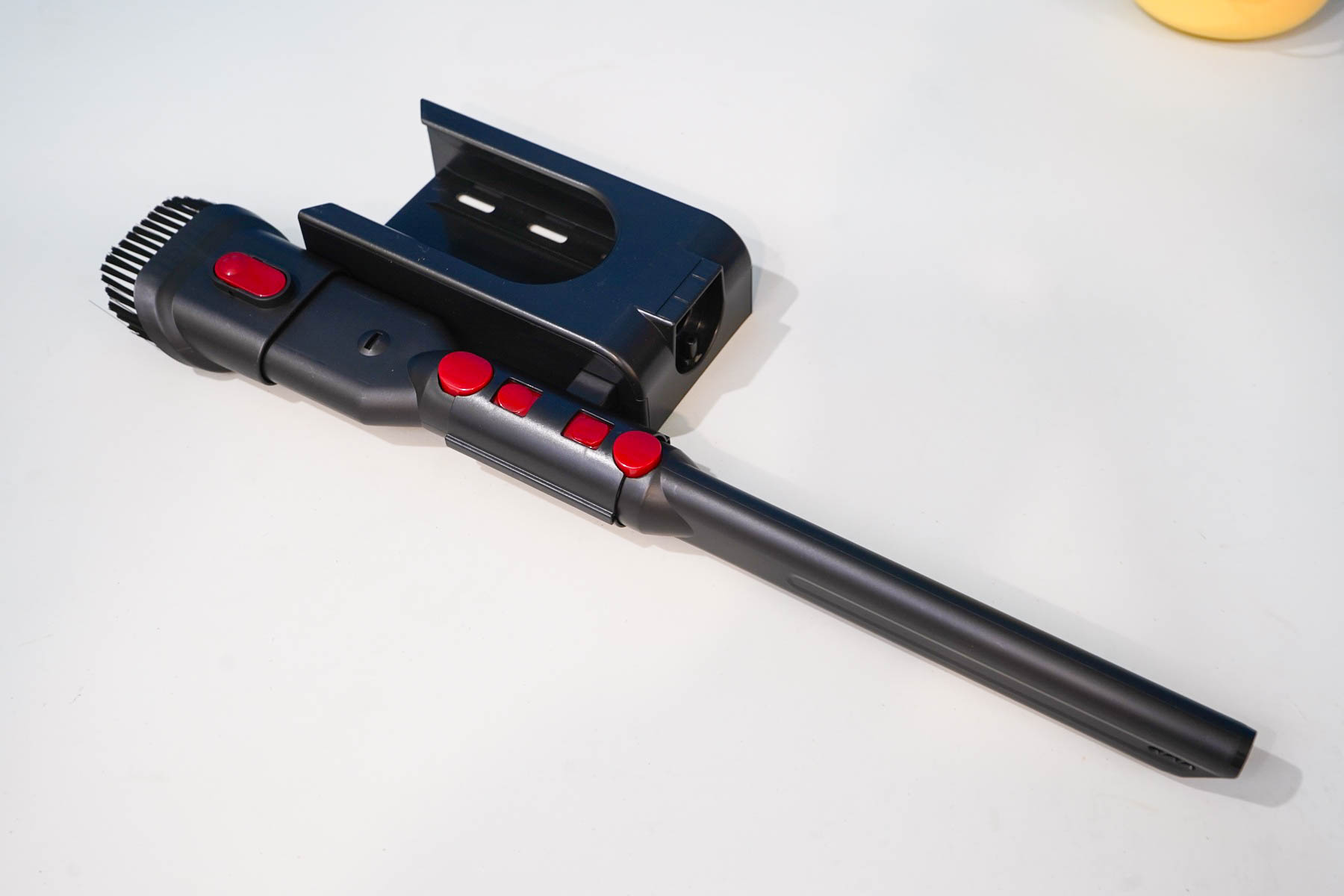 Теперь перехожу к уборке и тестам. В эксплуатации пылесос уже около месяца, достаточно удобный, маневренный, подходит для твердых/мягких покрытий и мебели. Удобно взять его с настенного крепления и собрать крошки, например, на кухне, и повесить обратно. Благо все насадки имеются под рукой, а на креплении он подзаряжается.