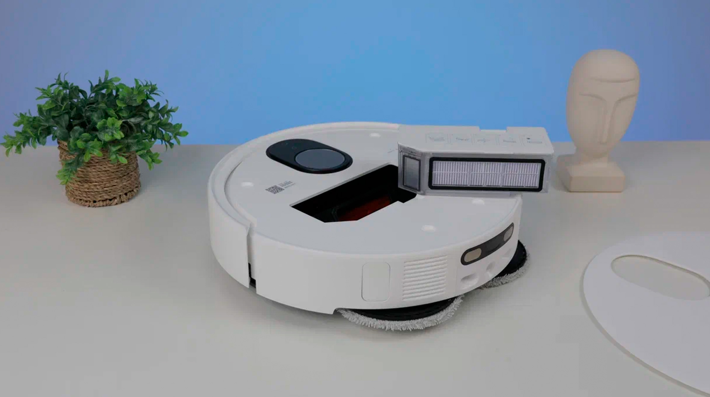 Ключевая особенность в дизайне робота — башенка лидара, которая опускается в корпус под диваном. В теории M40s может заехать в просветы высотой 9 см, а как дела обстоят на практике, узнаем позже.