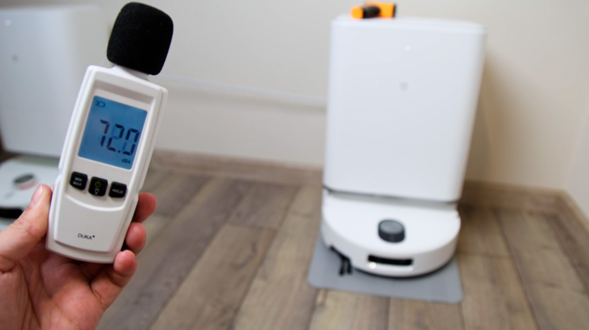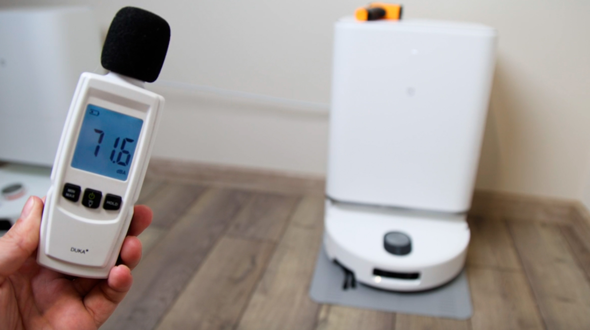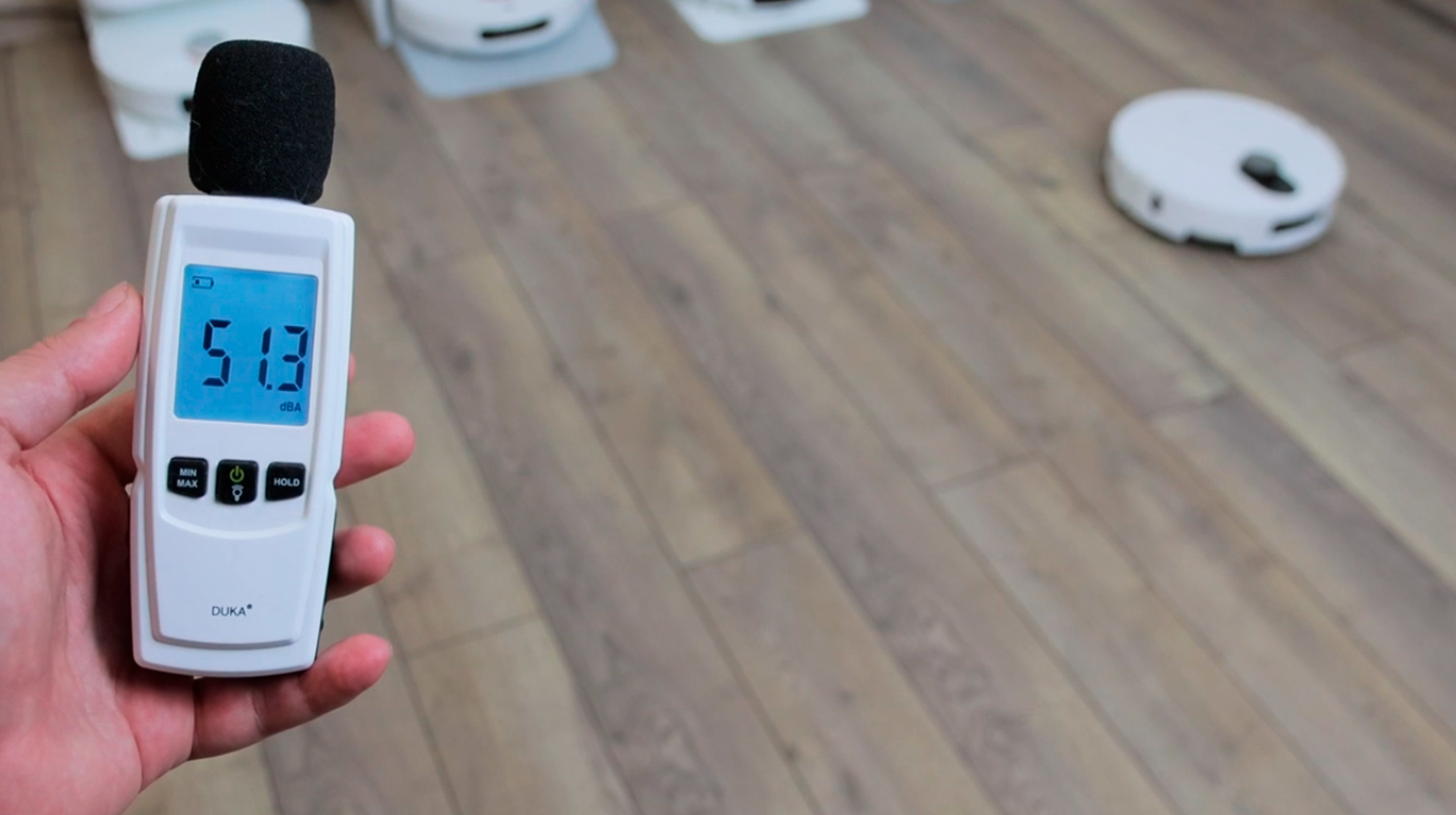 Шумит робот в том же диапазоне, что и большинство аналогов — 52-69 дБ. Уборку желательно планировать, пока дома никого нет.
