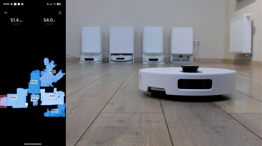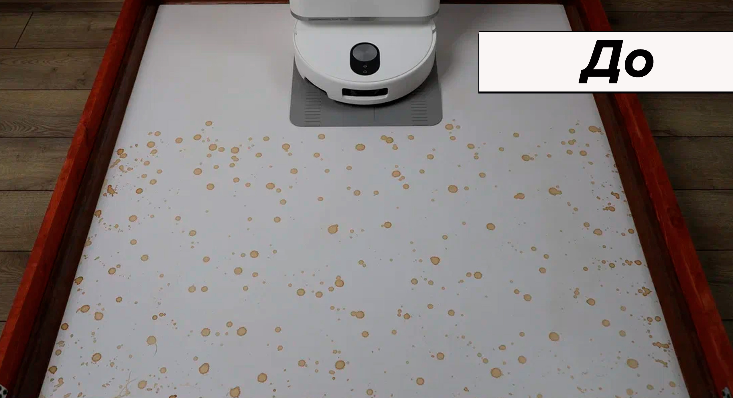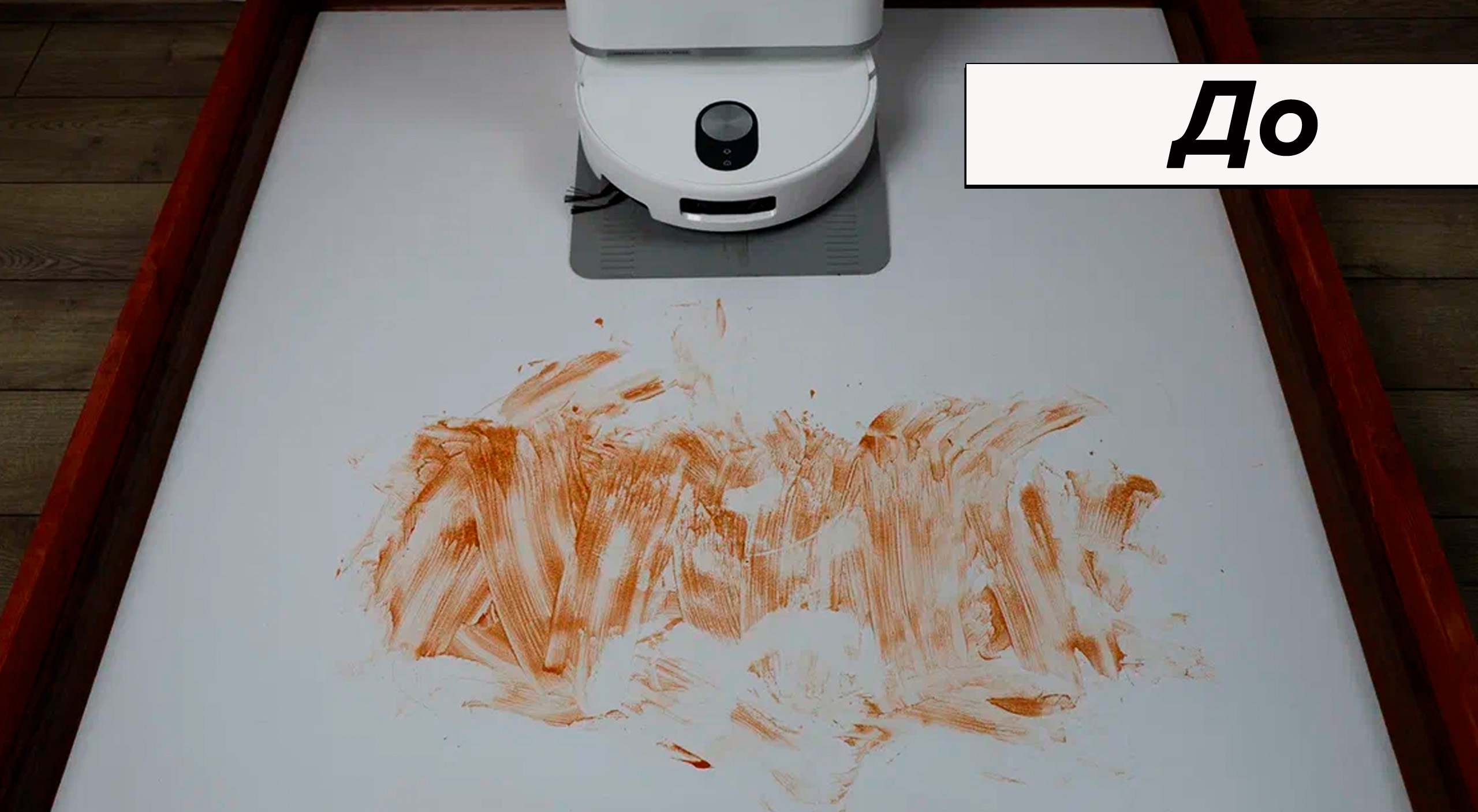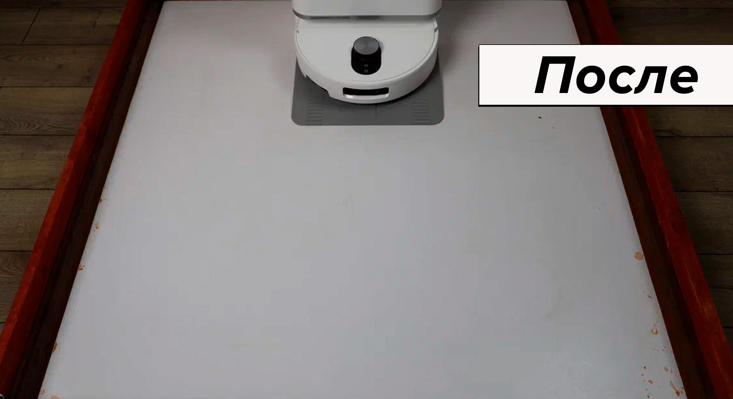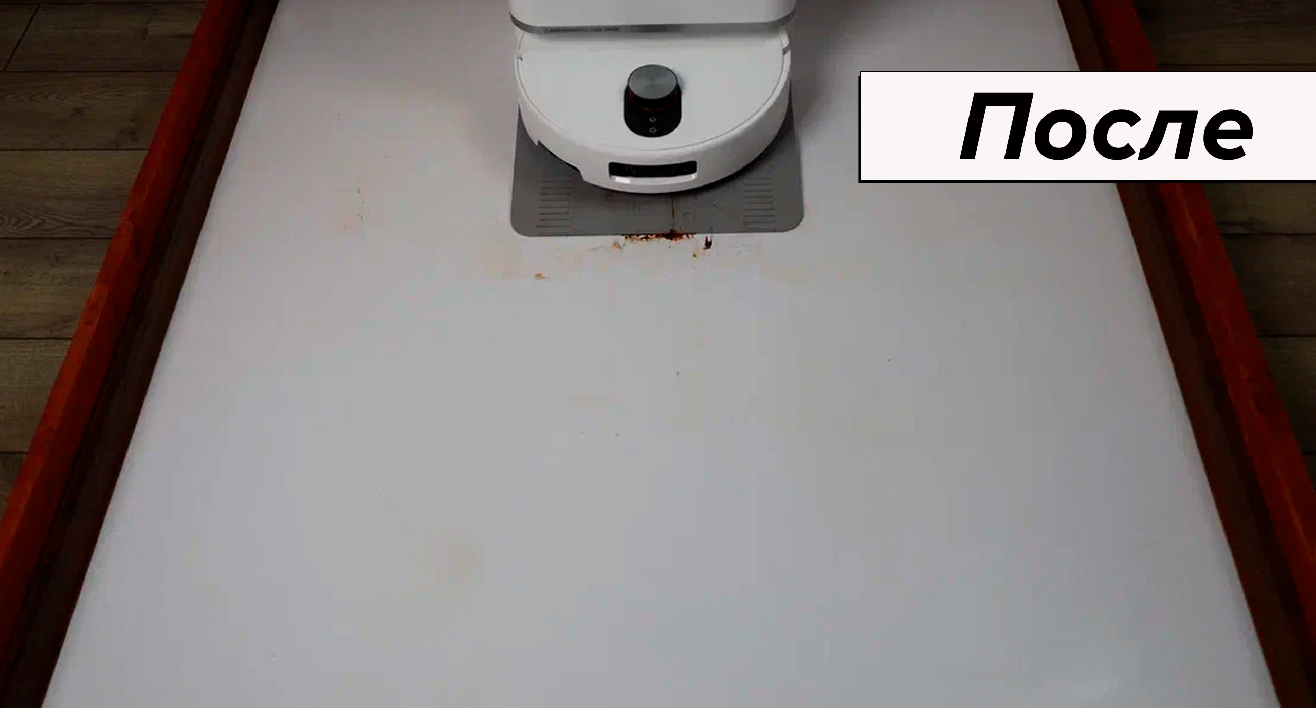 С протиркой полов ситуация примерно такая же, как и со сбором мусора — ни один запуск не прошёл без навигационного сбоя. Робот отлично оттирает пятна — но только там, где проезжает. А из-за того, что отдельные участки постоянно выпадают из его маршрута, приходится делать больше запусков, чем хотелось бы.