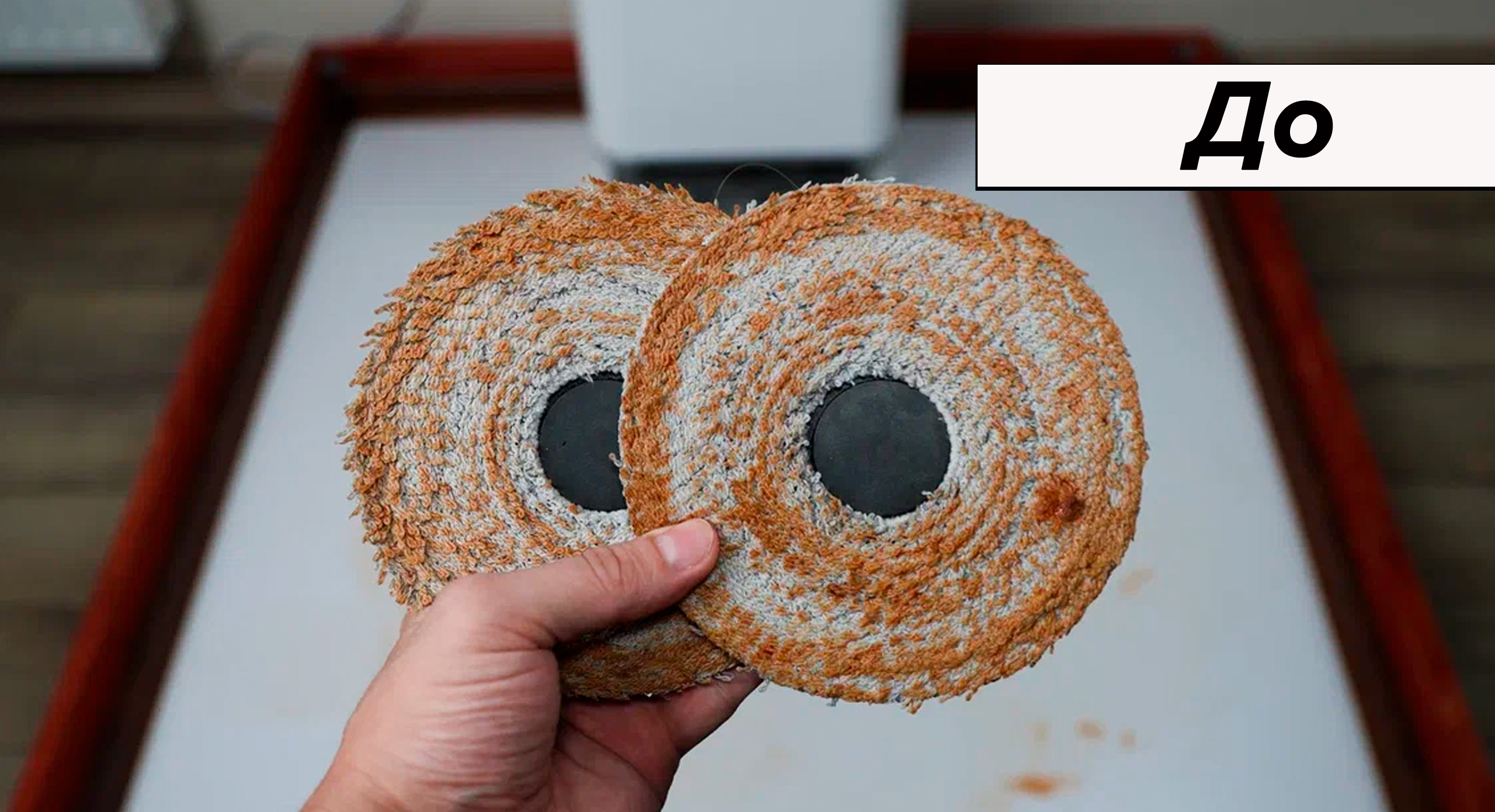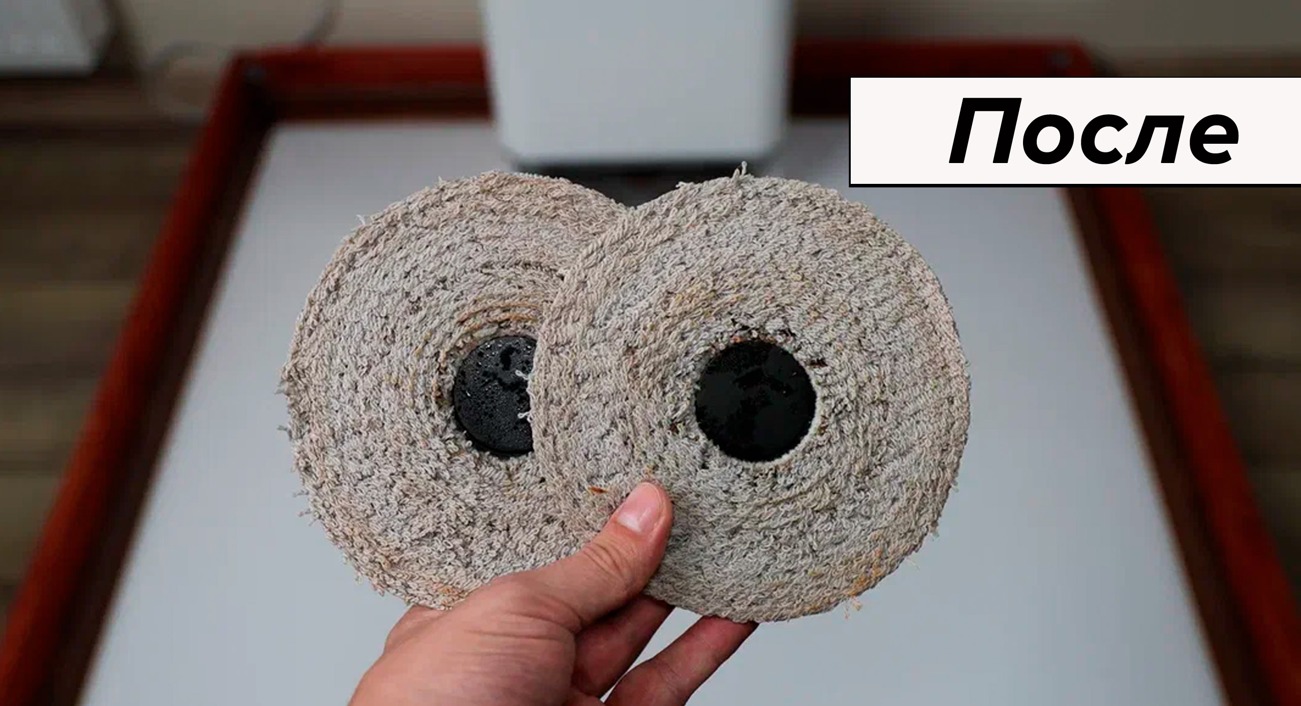 Кофейные и сочные пятна мелковорсовые мопики оттирают с 1-2 проходов. Грязь и кетчуп — с 4 проходов. Результат хороший, но мог быть ещё лучше, если бы M40s держал стабильную траекторию.