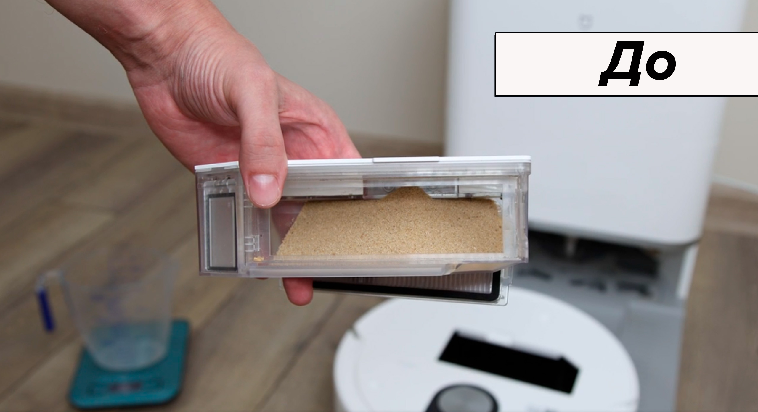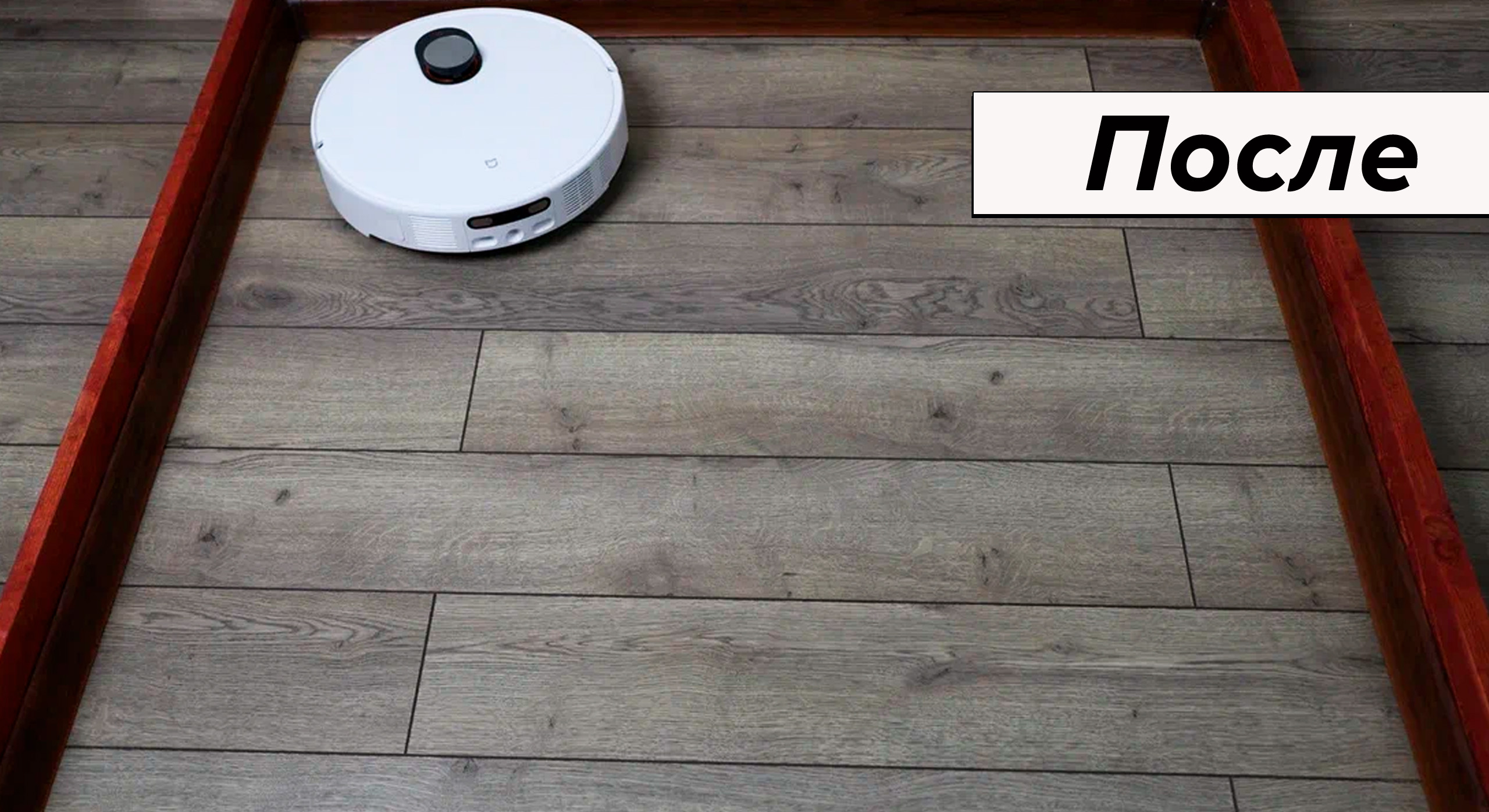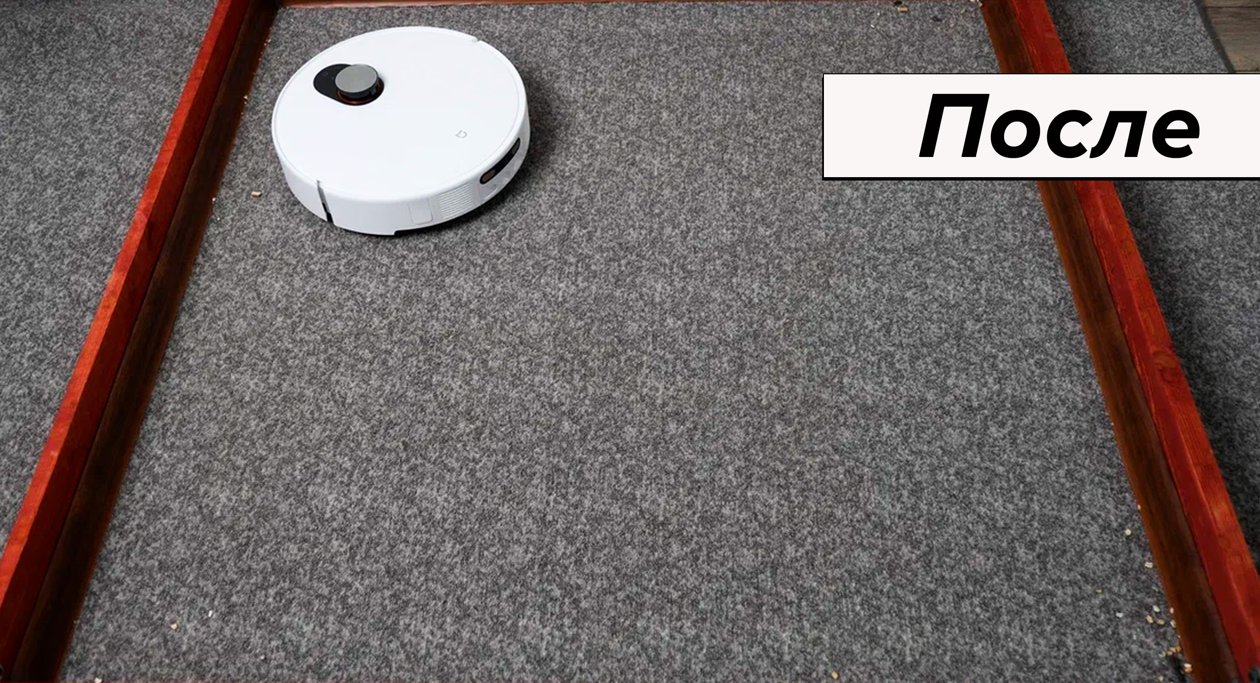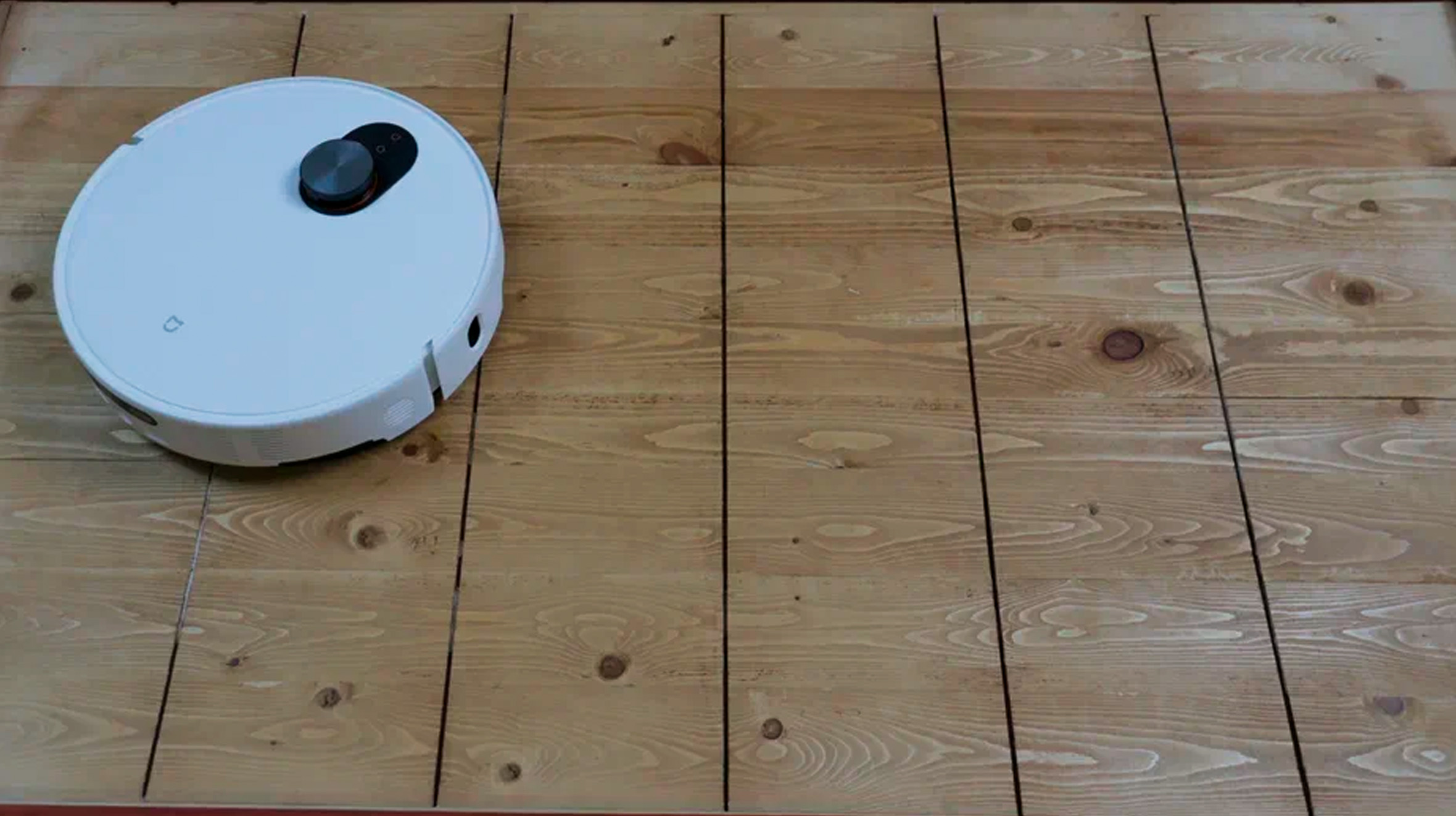 Компактный раструб с плотным прилеганием к полу продемонстрировал отличный результат на щелевом стенде. 2-мм щель зачистил всплошную, а более глубокие (вплоть до 10 мм включительно) — полосами. Xiaomi Mijia M40s — один из самых мощных роботов из тех, что её выпускают!