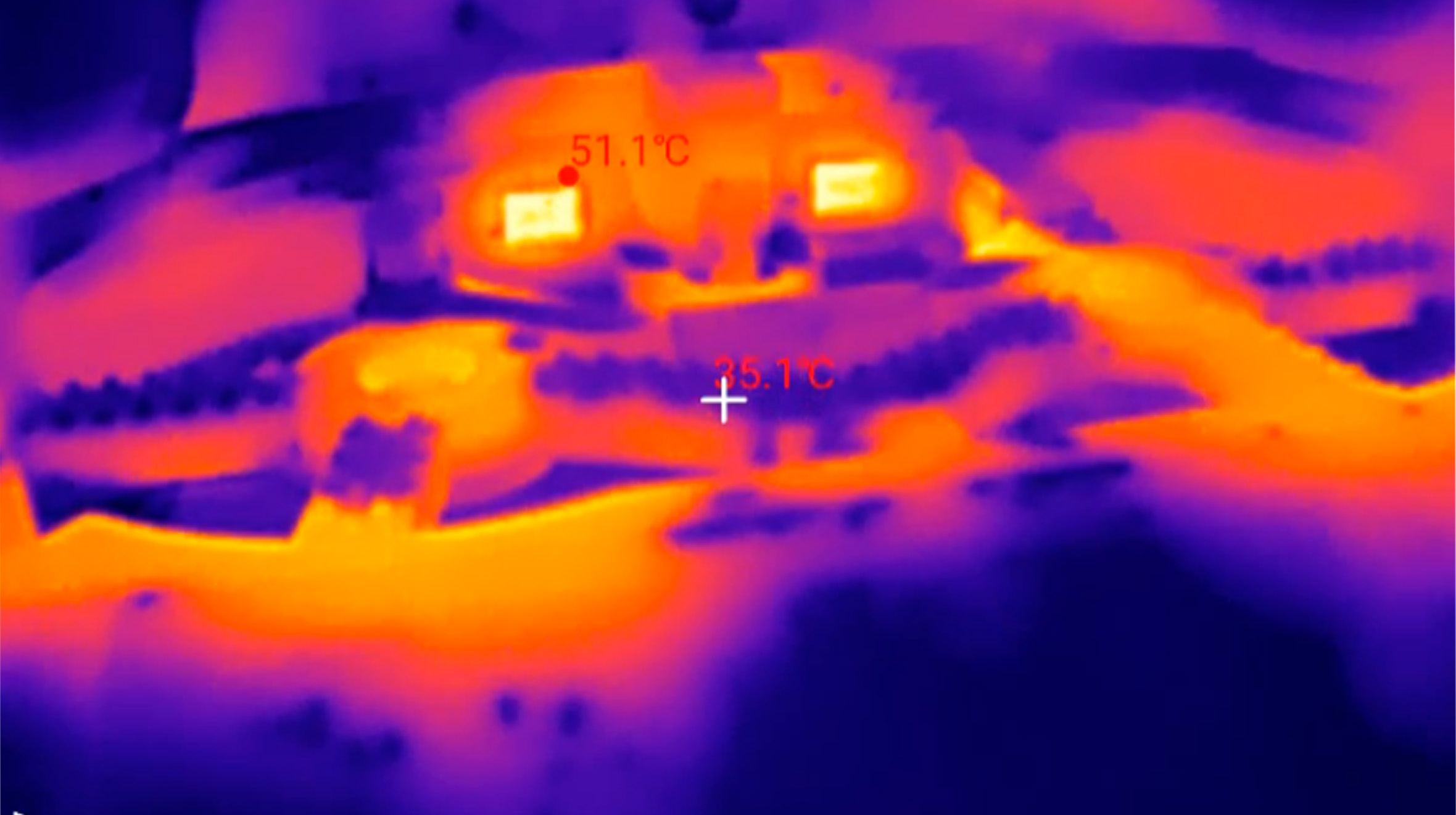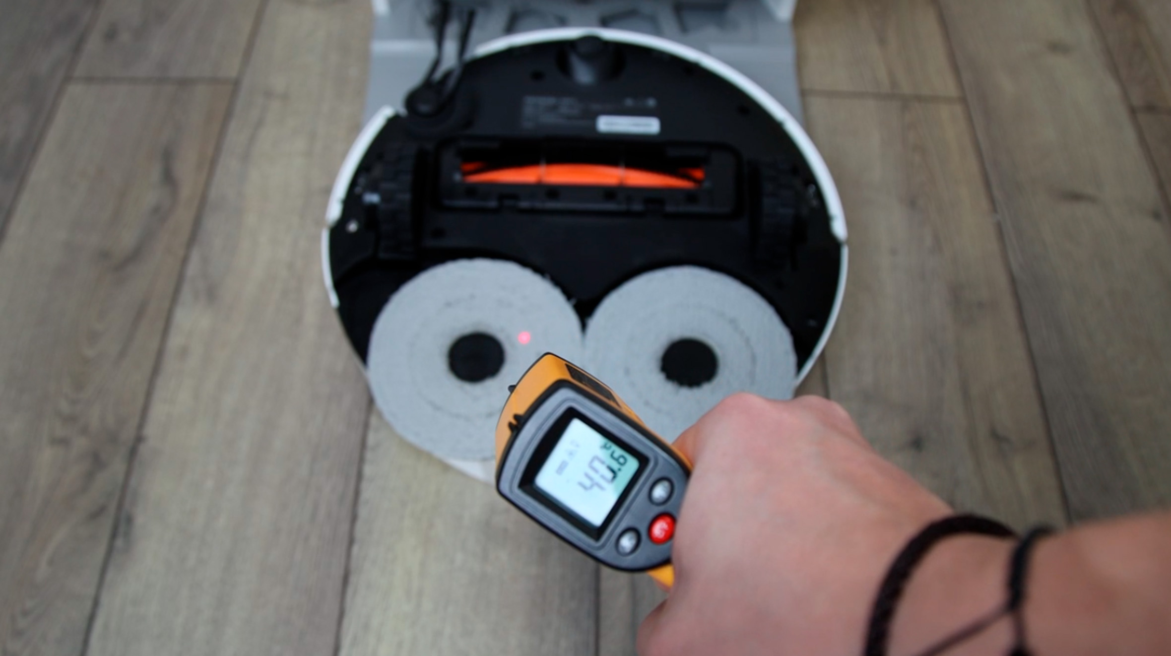 Промывка мопиков занимает 3 минуты с комфортным уровнем шума в диапазоне 50-60 дБ. Температура подогрева рекордная — тепловизор зафиксировал 64,8*С! Даже у более дорогих All-in-One от Dreame и Roborock нет таких показателей (речь о фактических значения на тепловизоре!). Расход воды умеренный — всего 200 мл на одно промывание.