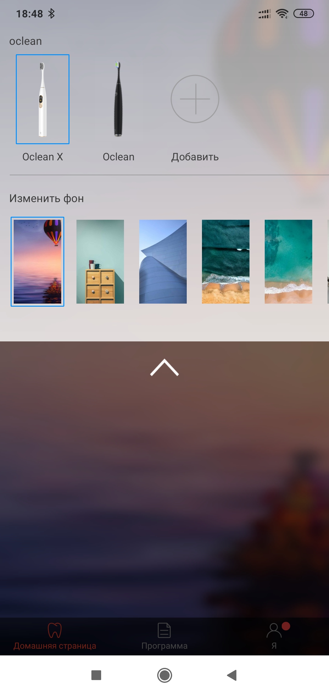 Для настроек щетки — служит фирменное приложение Oclean. В нем можно управлять несколькими щеткам одновременно, у меня уже — третья. Подлючаем новое устройство и выбираем из списка щетку