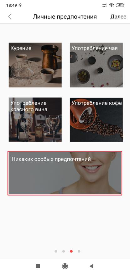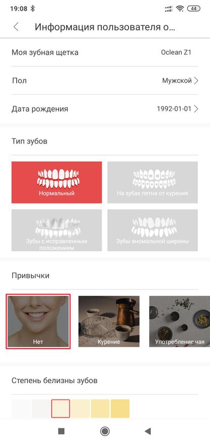 Последний шаг — степень белизны и после этого приложение предложит оптимальный вариант чистки. Теперь щетка готова к работе — в отличии от версии с экраном тут все настройки только в приложении.