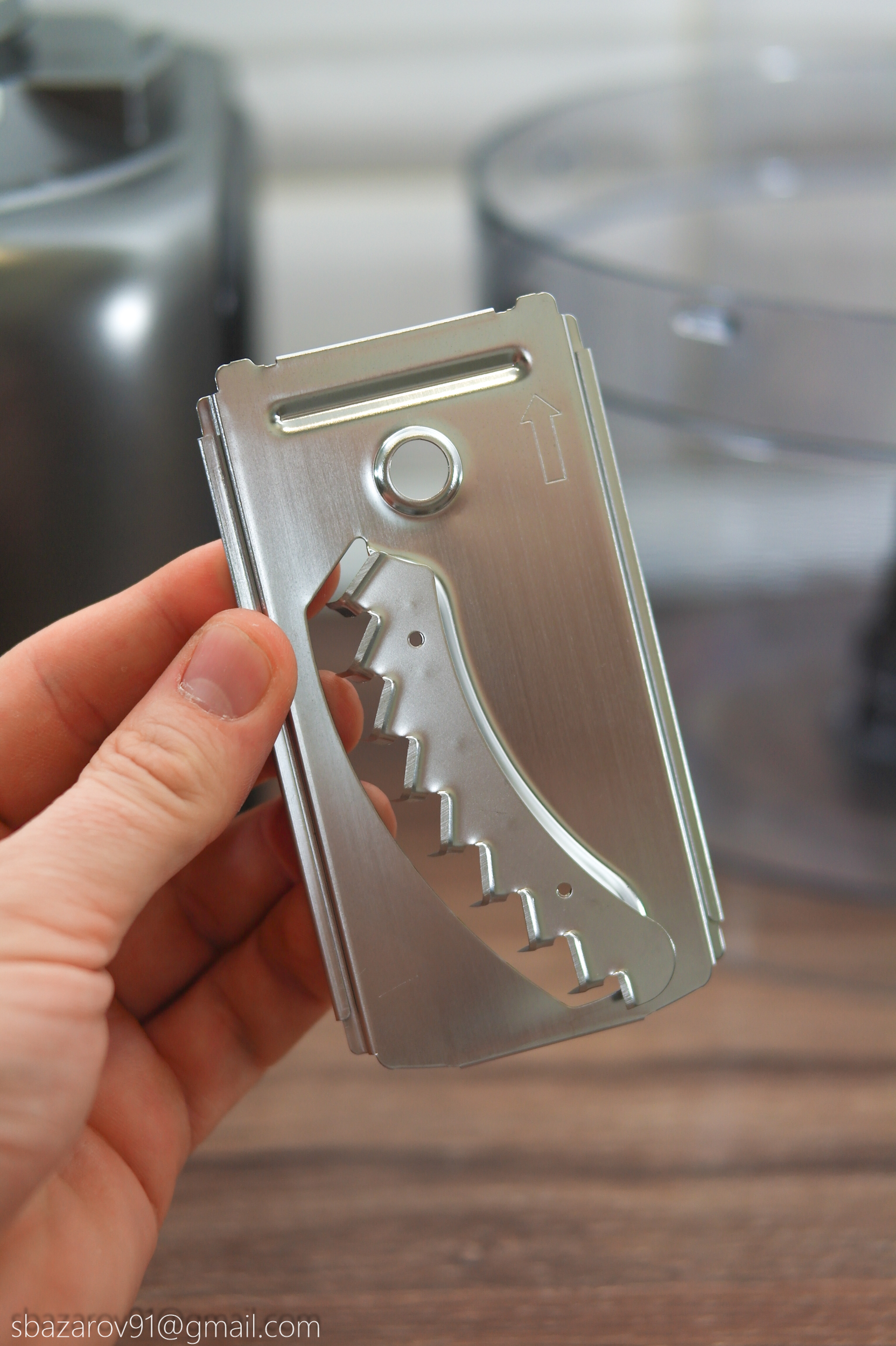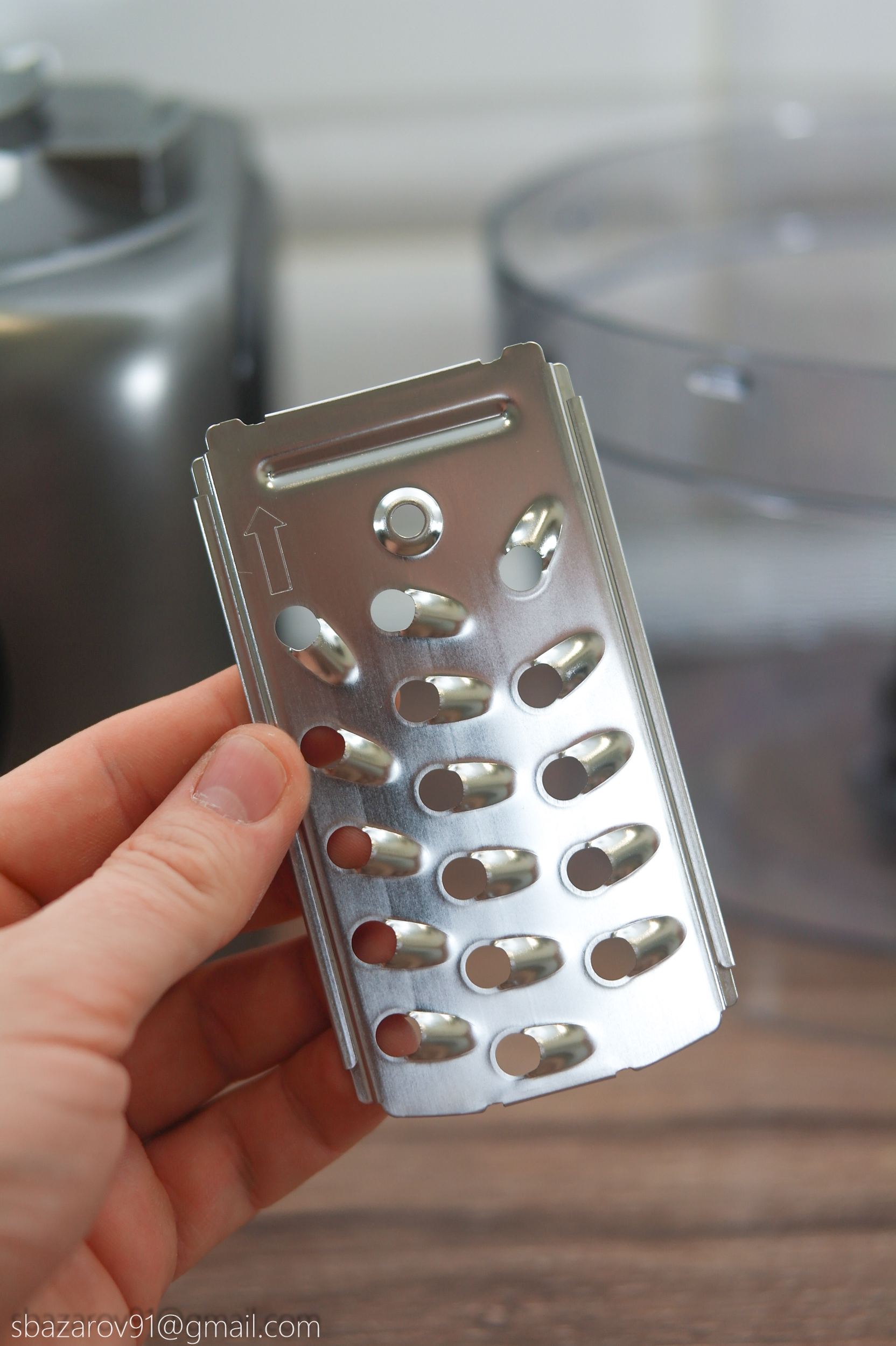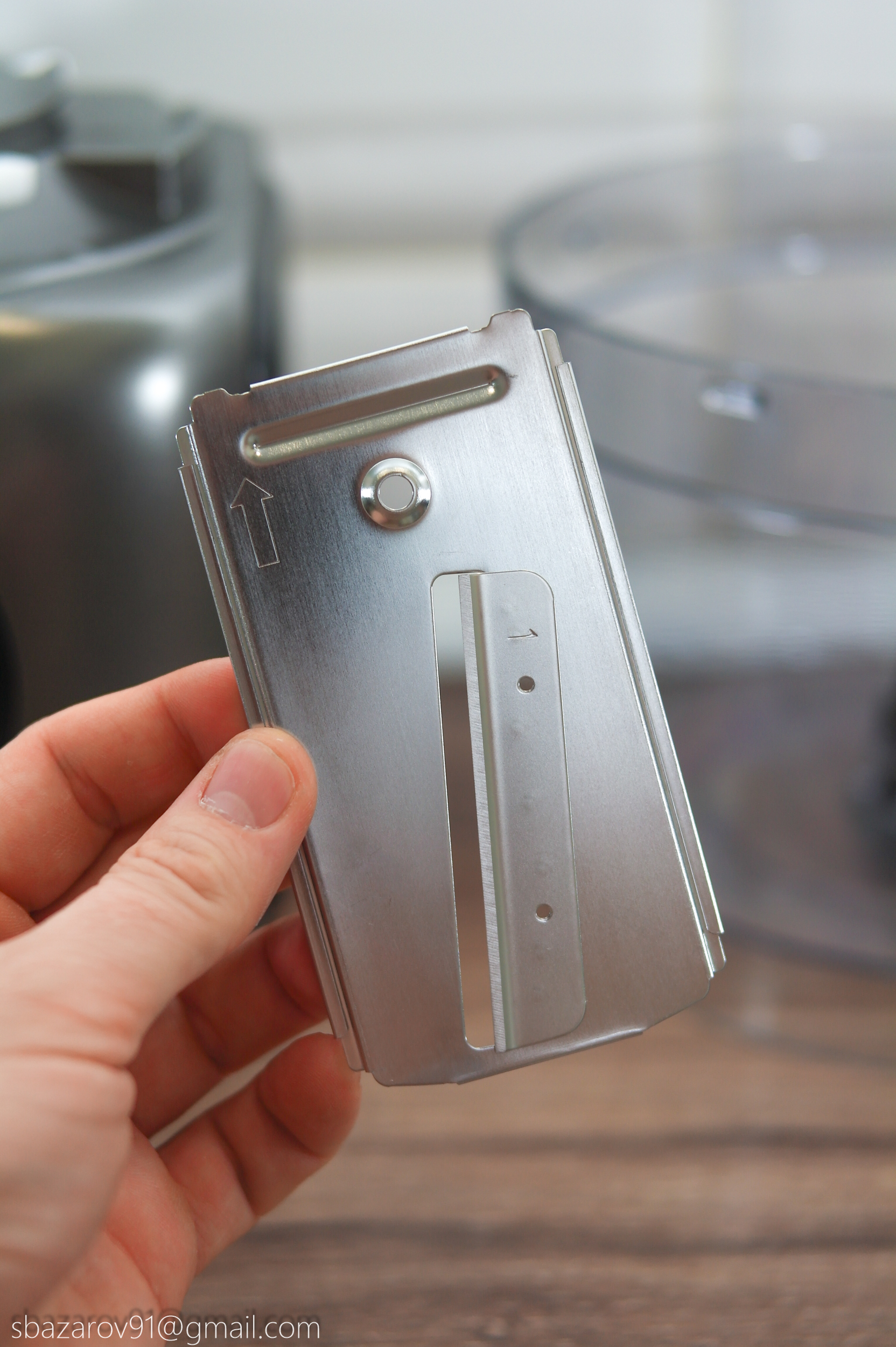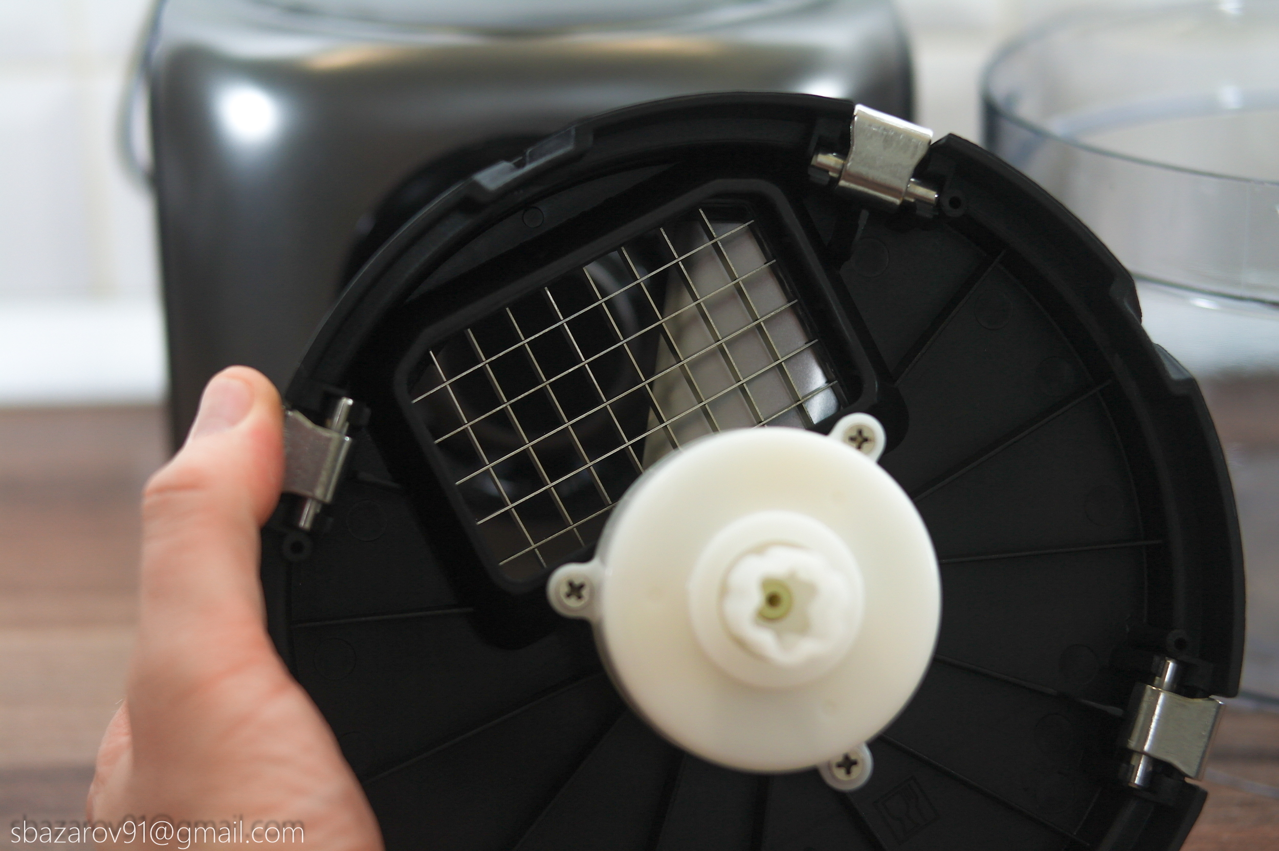 В этой чаше используются два вида ножей: пластиковый для теста и металлический для измельчения мяса, сыра и овощей. Оба ножа устанавливаются на съемную втулку и фиксируются внизу.
