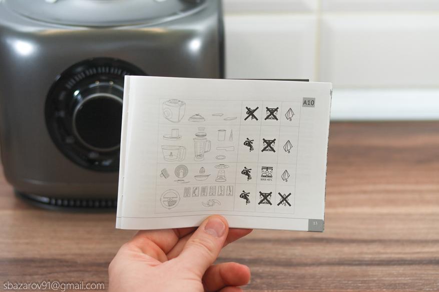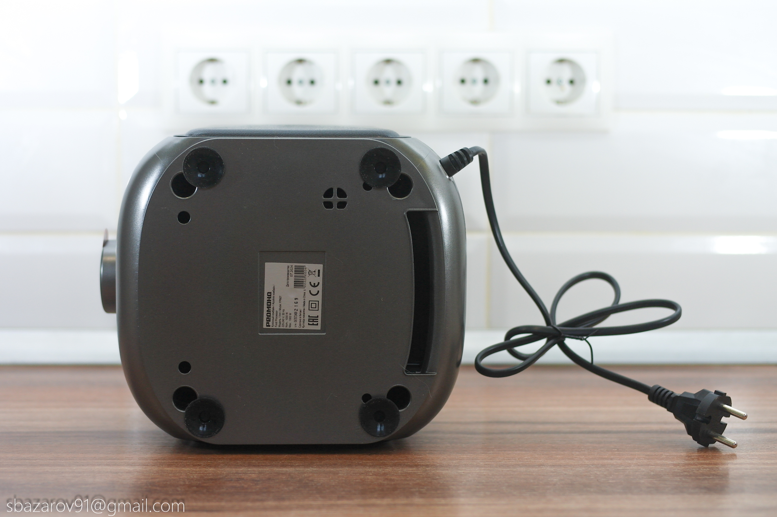 Для работы комбайна требуется электрическая сеть с напряжением 220~240 В. Шнур без заземления имеет длину 80 см.