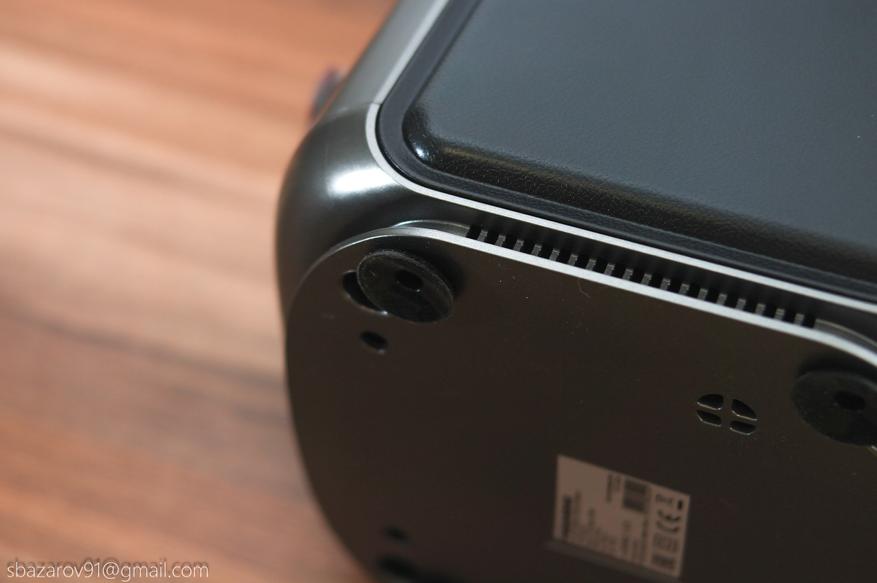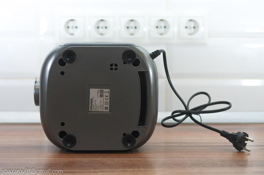 В нижней части прибора находятся четыре ножки с присосками, которые обеспечивают стабильность на рабочей поверхности.