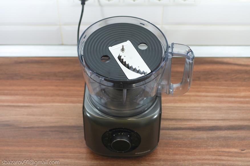 Насадки устанавливаются в соответствующий паз в диске, а сам диск одевается на съемную втулку. После устанавливаем верхнюю крышку и загружаем в нее продукты измельчения.
