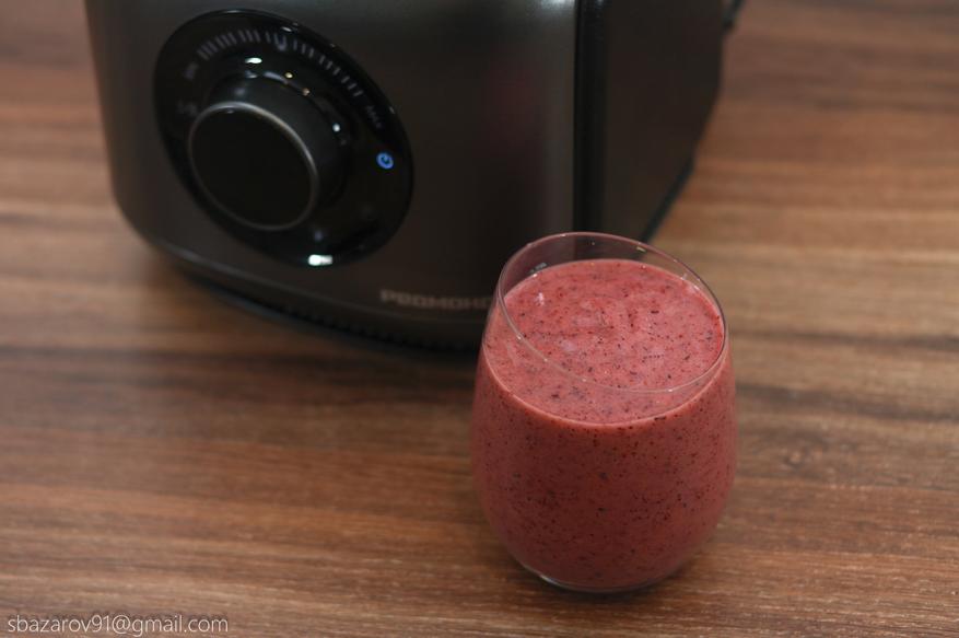 Также стоит отметить, из-за обилия замороженных фруктов смузи — единственное блюдо, где доводилось повышать мощность до максимальных оборотов. В остальном же было достаточно минимальных оборотов, как для резки продуктов кубиками, так и для получения свежевыжатого сока.