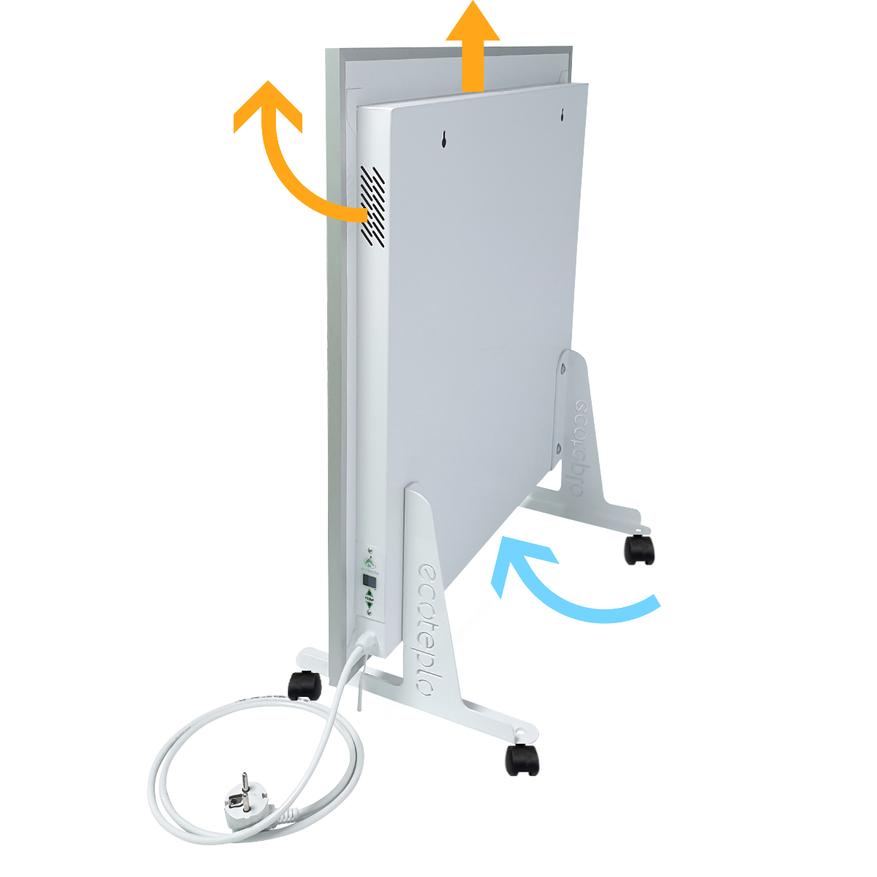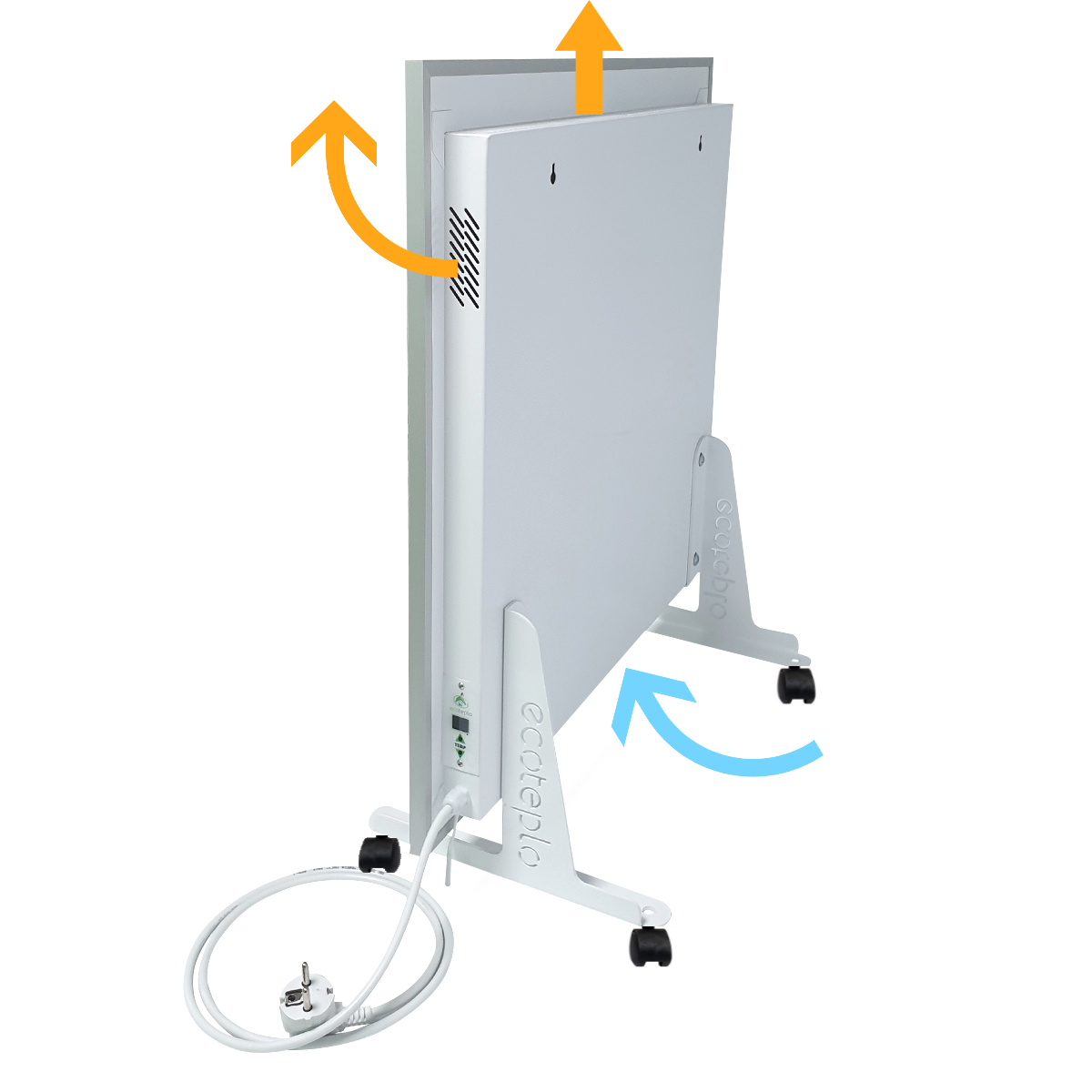Поток создает непрерывный цикл: тёплый поток воздуха поднимается, охлаждается и опускается обратно. Механизм обеспечивает равномерное распределение тепла по комнате до достижения установленной температуры. Блок управления автоматически регулирует подачу питания на нагревательный элемент, поддерживая комфортный уровень тепла.