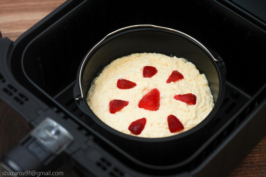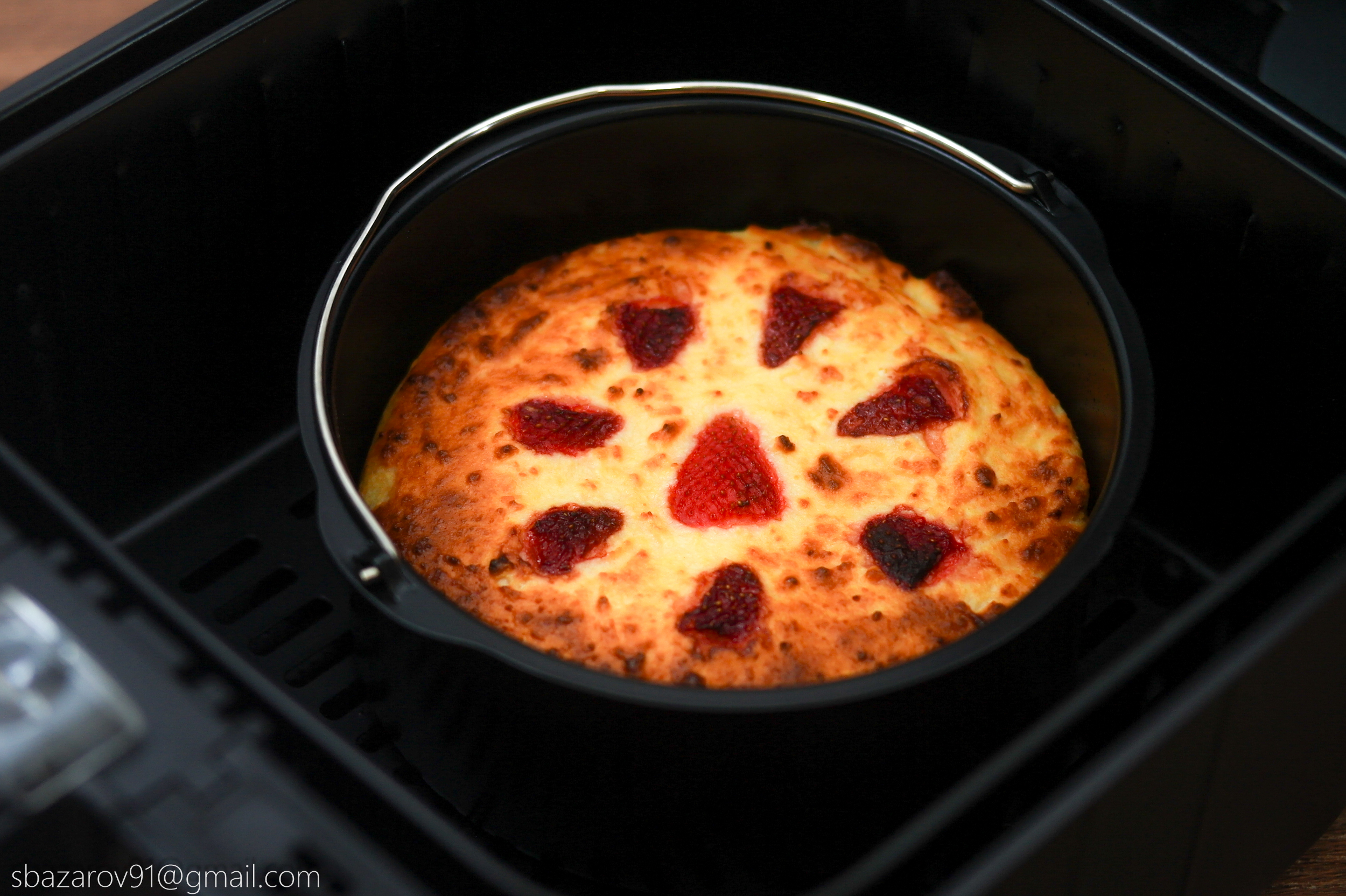 И напоследок, классика, которая никогда не надоедает. Творожная запеканка из двух пачек 5-процентного творога. Минимум лишнего сахара, нежный творог и сочная клубника сверху. В аэрогриле запеканка получается особенно воздушной, с румяной корочкой, но мягкой внутри. Отличный вариант для полезного завтрака или легкого ужина.