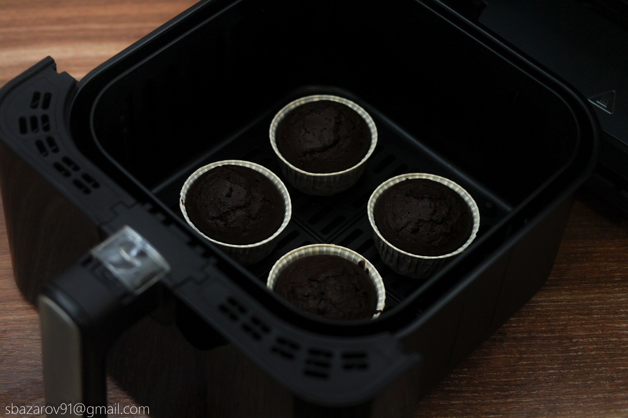 На десерт у нас полезные бисквитные кексы. Для чистоты эксперимента мы решили устроить небольшое соревнование: приготовили кексы сразу в двух приборах: в аэрогриле и в обычном духовом шкафу. И знаете что? Разницы во вкусе и текстуре никакой! Зато аэрогриль нагревается мгновенно и потребляет меньше энергии. Вывод очевиден: для небольшой семьи или компании аэрогриль — просто находка.