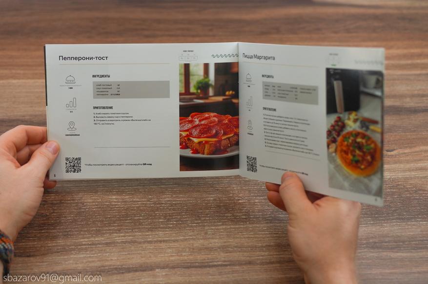 По части приготовления и режимов работы — полная свобода. Основная экономия времени достигается за счет технологии Fast Hot Air: равномерный обдув со всех сторон. 10 предустановленных режимов перекрывают большую часть повседневных задач, а возможность выставлять температуру от 30 до 200 градусов и создавать свои сценарии пригодится тем, кто любит экспериментировать. Хочется сказать отдельное спасибо за звуковые напоминания о перевороте продуктов: с купатами и крылышками это реально выручает, не надо стоять и караулить.