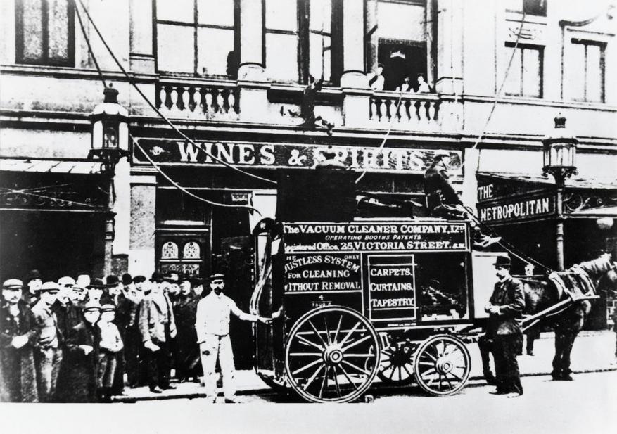 В августе 1901 года Хьюберт Сесил Бут получил патент на свое изобретение. Первый в мире коммерческий пылесос конструктивно значительно отличался от современных аппаратов. Это был громоздкий агрегат, приводимый в действие двигателем внутреннего сгорания и установленный на конную повозку.