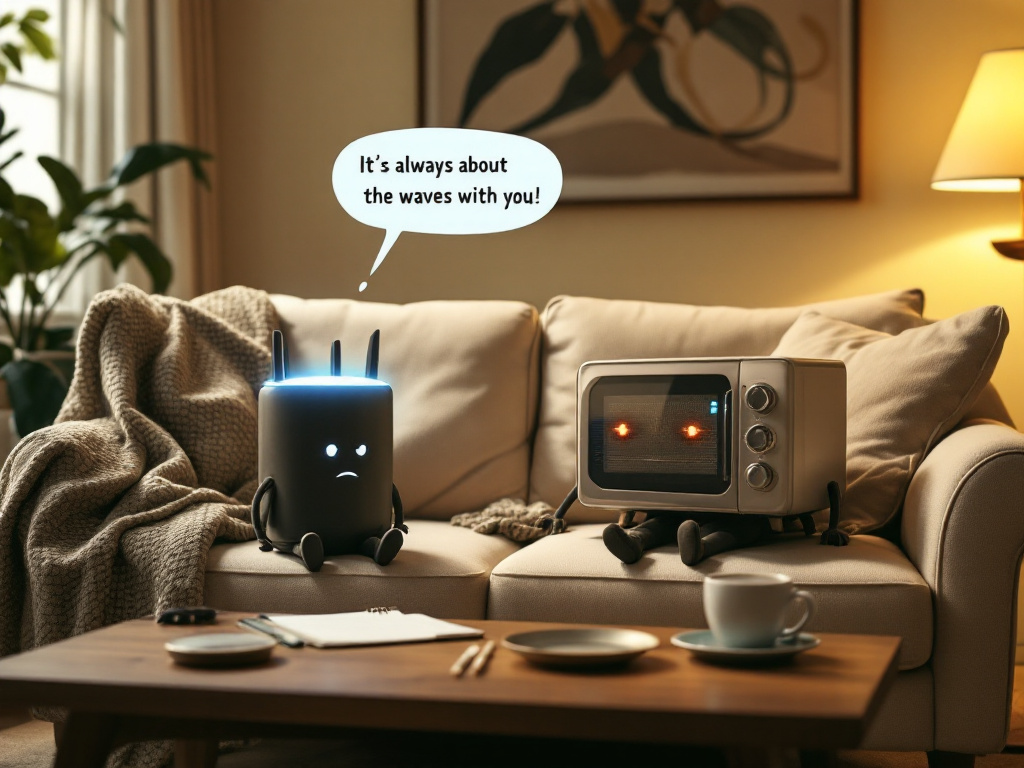 Первый вопрос, который меня мучил: «Как вообще эти два, казалось бы, безобидных прибора могут так друг друга раздражать?» Оказалось, что дело в частотах. Wi-Fi у нас, как правило, работает на 2,4 ГГц, а микроволновка — на 2,45 ГГц. Разница, как говорится, на волосок. Представьте себе двух горлопанов, которые на одной лестничной клетке пытаются перекричать друг друга. Микроволновка, как более «громкая», просто заглушает бедный роутер.