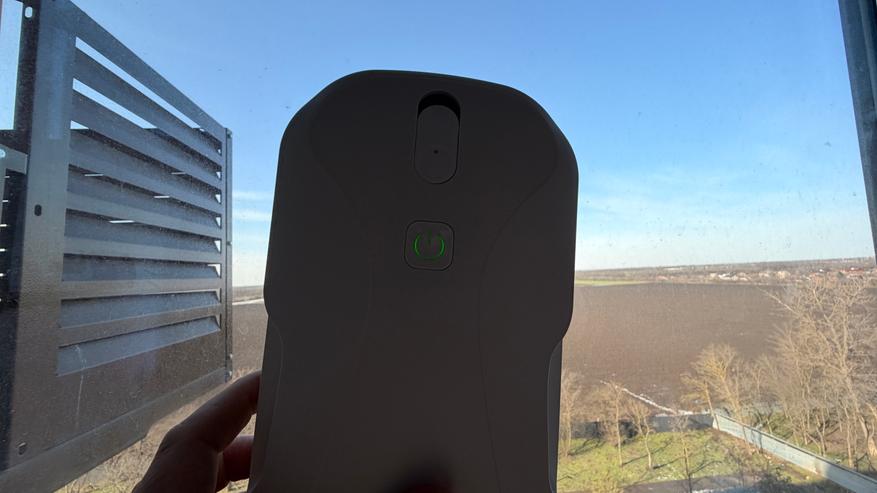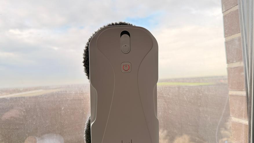 После чего собираем все провода, подключаем робота к электросети. Подносим к стеклу и удерживаем кнопку включения. Понравилось, что робот легкий и имеет компактные размеры, а выступы на корпусе позволяют удобно его держать одной рукой.