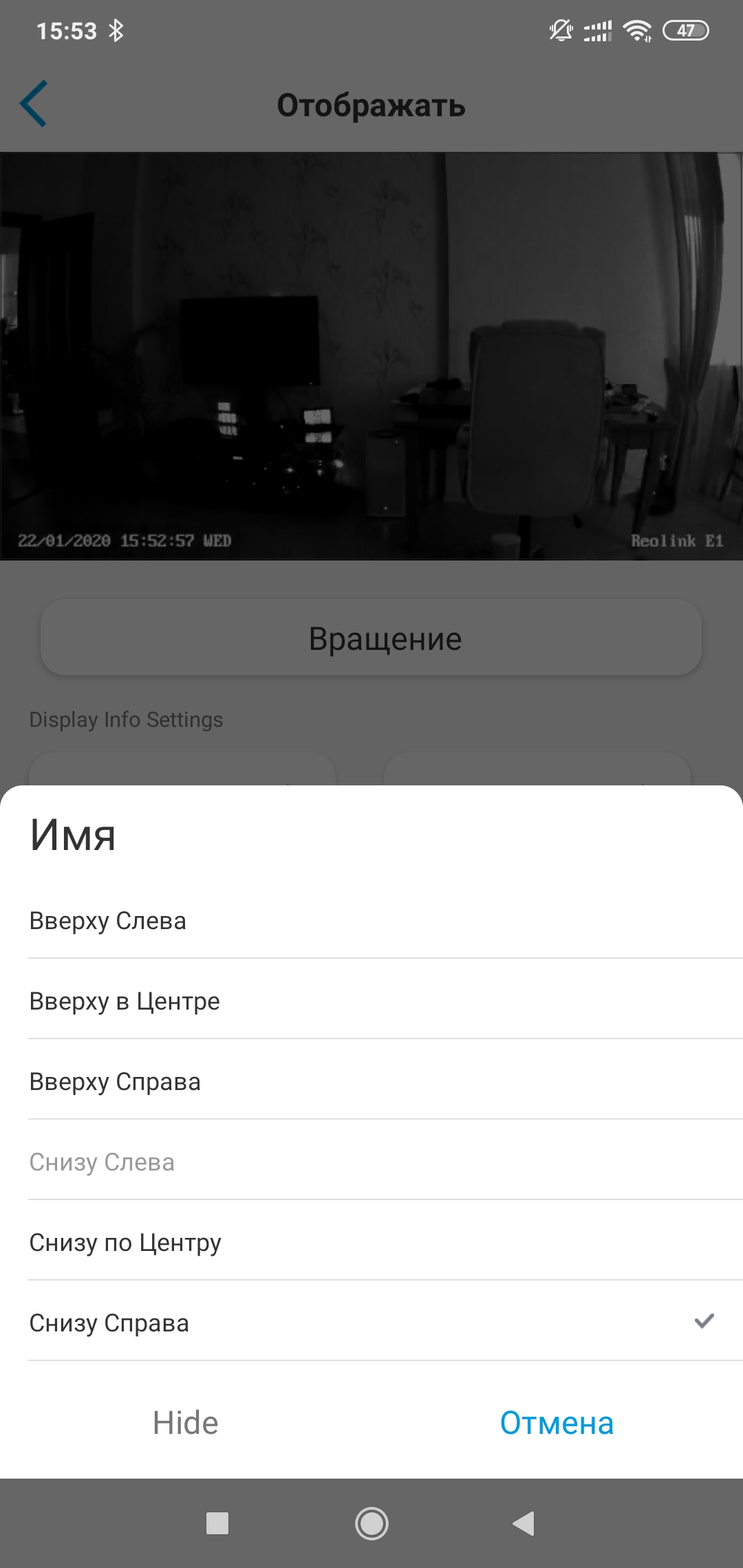 Тут же настраивается положение названия камеры, даты и времени на кадре. При желании можно включить или отключить водяной знак с названием бренда