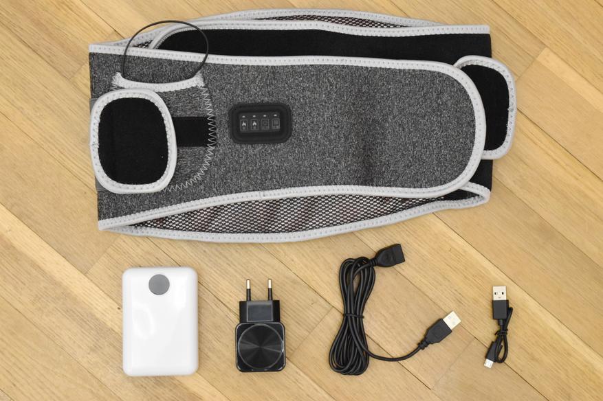 Подводя итог, скажу, что массажером я довольно. Отличное качество материалов, добротный пошив и отделка, хороший размер ширины изделия. Что касается длины, то обладатели талии свыше 95 см не смогут воспользоваться прибором. Покупатели в одной семье с очень большой разницей в обхвате талии должны внимательно подойти к вопросу выбора подобного приспособления, и заказать 2 разных по размеру массажера. В противном случае, приобретя слишком длинный пояс, миниатюрным членам семьи не оборачиваться же в него несколько раз? Вы также ощутите дискомфорт. Про этот массажер могу с уверенностью сказать, что работает он эффективно: после дачного отдыха частенько имеется чувство переутомления спины. Поясничный электромассажер снимет боль и усталость, расслабит мышцы. Программа Вибро в зависимости от выбранного режима деликатно или интенсивно проработает область поясницы. Согревающий эффект улучшит кровообращение, способствует быстрому восстановлению поврежденных связок и мышц. Благодаря 2 способам питания — от сети и беспроводным путем — вы можете выбрать стационарное место для организации массажа либо перемещать массажер по квартире и даже брать его с собой в дорогу или на работу. Или просто делать привычные по дому дела и массажировать спину находу. Массажер работает практически бесшумно, и вы получите сеанс массажа, даже разместившись рядом со спящим ребенком. Обязательно повторюсь, что комплект поставки максимально возможный: несколько кабелей разной длины, адаптер со штекером для евророзетки и, самое важное, повербанк на 12 000 мАч.