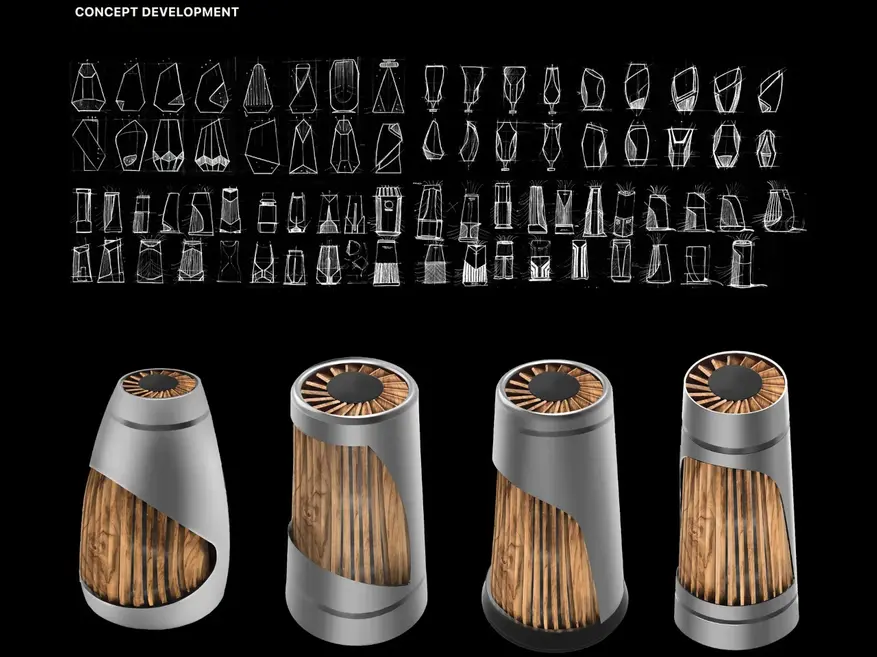 Техническая часть устройства включает высокоэффективный вентилятор с бесщёточным двигателем постоянного тока, HEPA-фильтр для улавливания твёрдых частиц, датчик газа MQ135 и датчик PM2.5 для мониторинга качества воздуха. Информация о состоянии воздуха передаётся пользователю через плавное изменение цветовой температуры подсветки вместо цифрового дисплея.