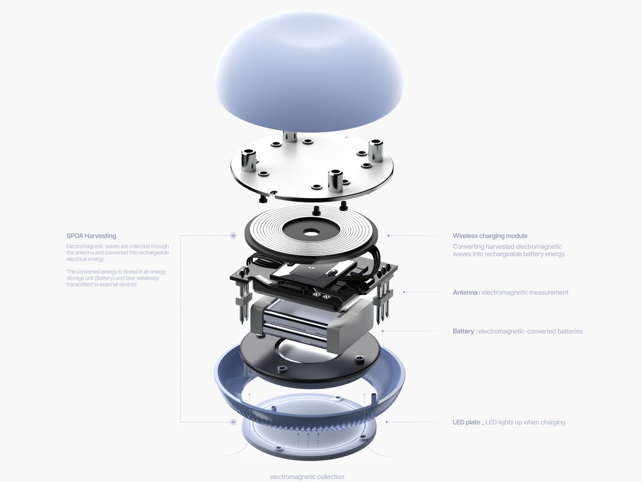Команда дизайнеров Пак Чонмин, Ко Юнсо и Ким Минхи разработала концептуальное устройство Spoa, направленное на решение проблемы фантомных энергетических нагрузок в жилых помещениях. Представленная 23 сентября 2025 года система предлагает инновационный подход к сбору электромагнитных полей от бытовых приборов, находящихся в режиме ожидания.