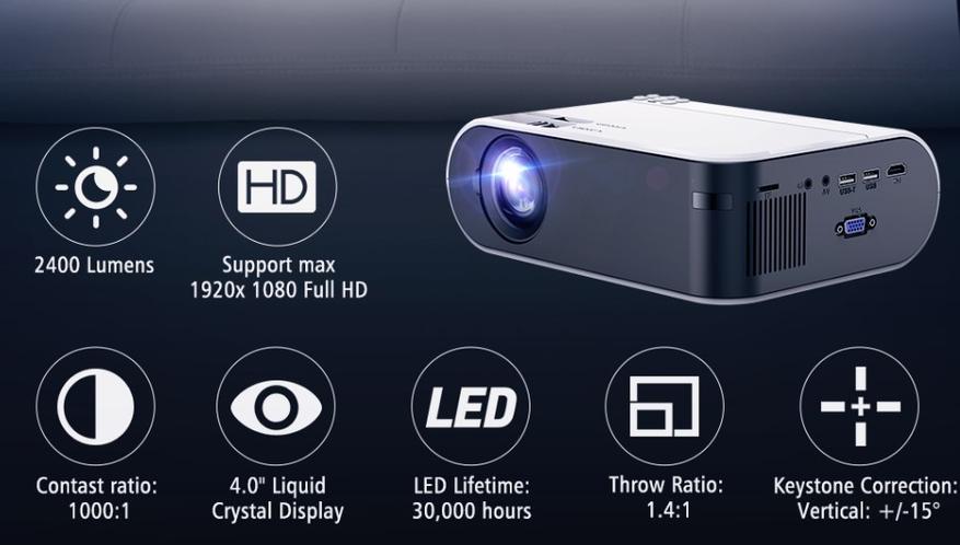 Яркость 2400lm, контраст 1000:1