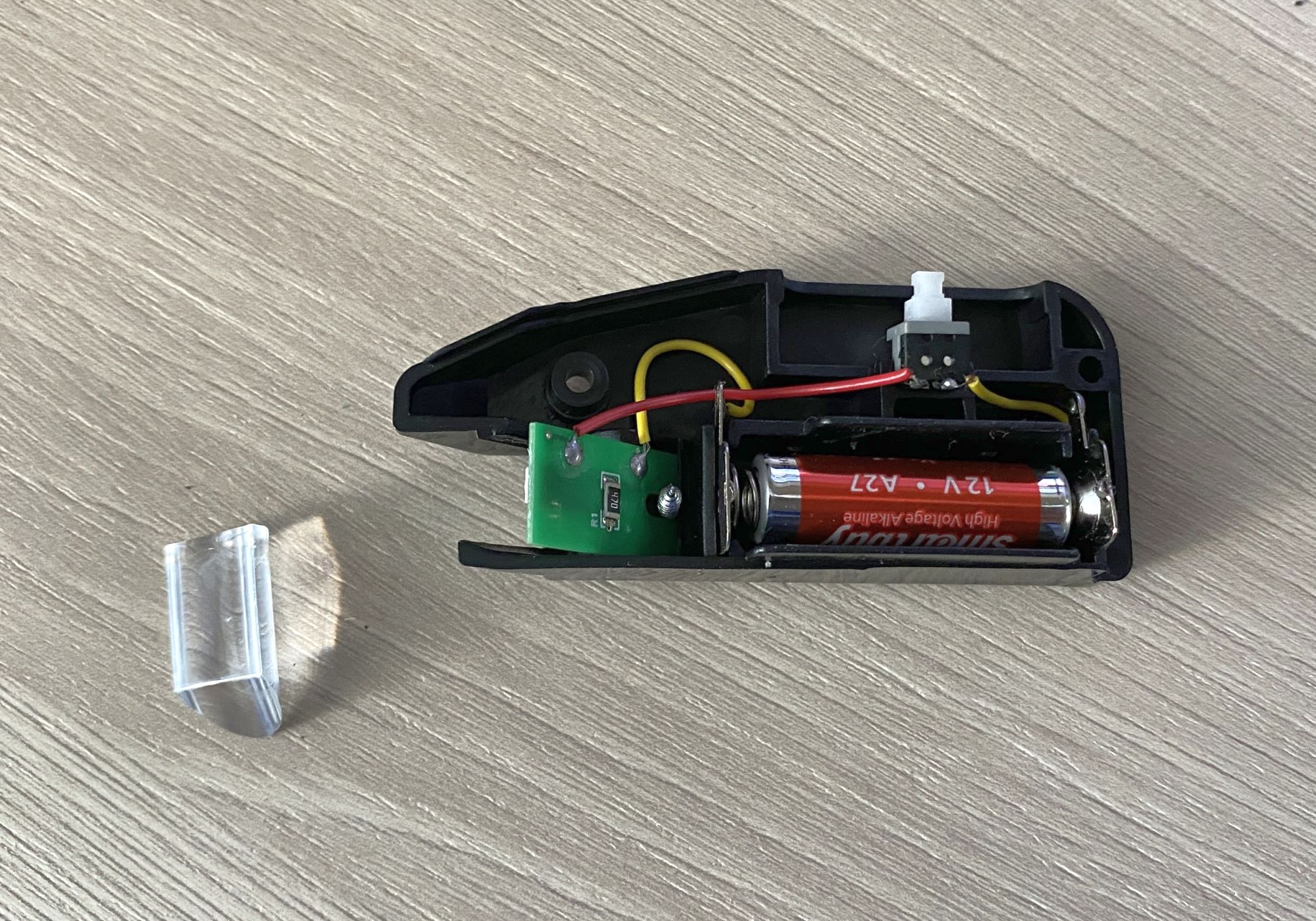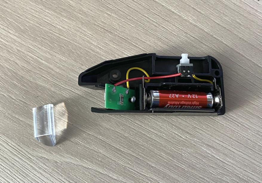 Питание устройства осуществляется от 12 вольтовой батарейки типа А27 (она примерно в полтора раза меньше «пальчиковой» ААА). Производитель не положил ее в комплект, поэтому пришлось приобретать ее отдельно, хотя стоят они вполне сносных денег.