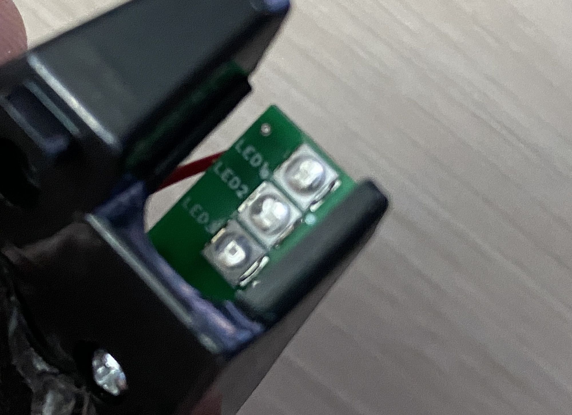 Внутри все очень просто, кнопка линза и плата светодиодов.