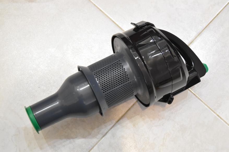 Отделение для мусора выполнено из прозрачного серого пластика, удобно контролировать наполненность пылесборника. Емкость контейнера 2,5 л. Контейнер для мусора легко снимается с корпуса нажатием на клавишу, устанавливается обратно также легко и крепко фиксируется к корпусу.