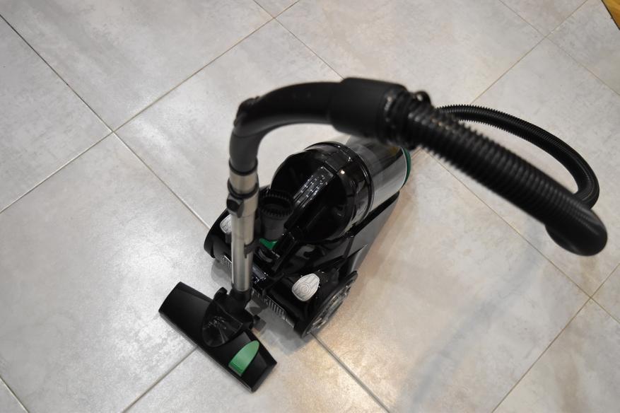 Могу с уверенностью сказать, что с пылью и мусором на плитке, паркете, мягкой мебели, в труднодоступных местах с правильно подобранной щеткой пылесос идеально справляется. Безусловно, результат его работы и не стоит сравнивать с ручными пылесосами. Вам не придется заботится, что ваш помощник разрядится, пылесос имеет классически проводную конструкцию. Пятиметровый кабель в комплексе с длинным гибким шлангом и штангой, маневренные колесики не будут сковывать передвижения техники по квартире. Мощность всасывания регулируема и ощутима на максимуме, стандартная щетка пол/ковер сильно присасывается к поверхности пола, и скорее всего вы не будете пылесосить гладкое напольное покрытие на максимальной мощности. Современный дизайн, удобные ножные кнопки для старта и сматывания кабеля, вертикальный способ хранения, емкий пылесборник и, непременно, моющие фильтры делают эту модель удачной для комфортного процесса уборки.