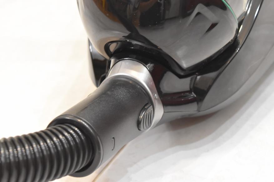 В комплекте имеется гибкий шланг, он выполнен из пластика. На рукоятке продуман воздушный клапан для снижения силы всасывания.