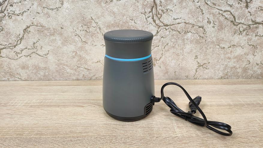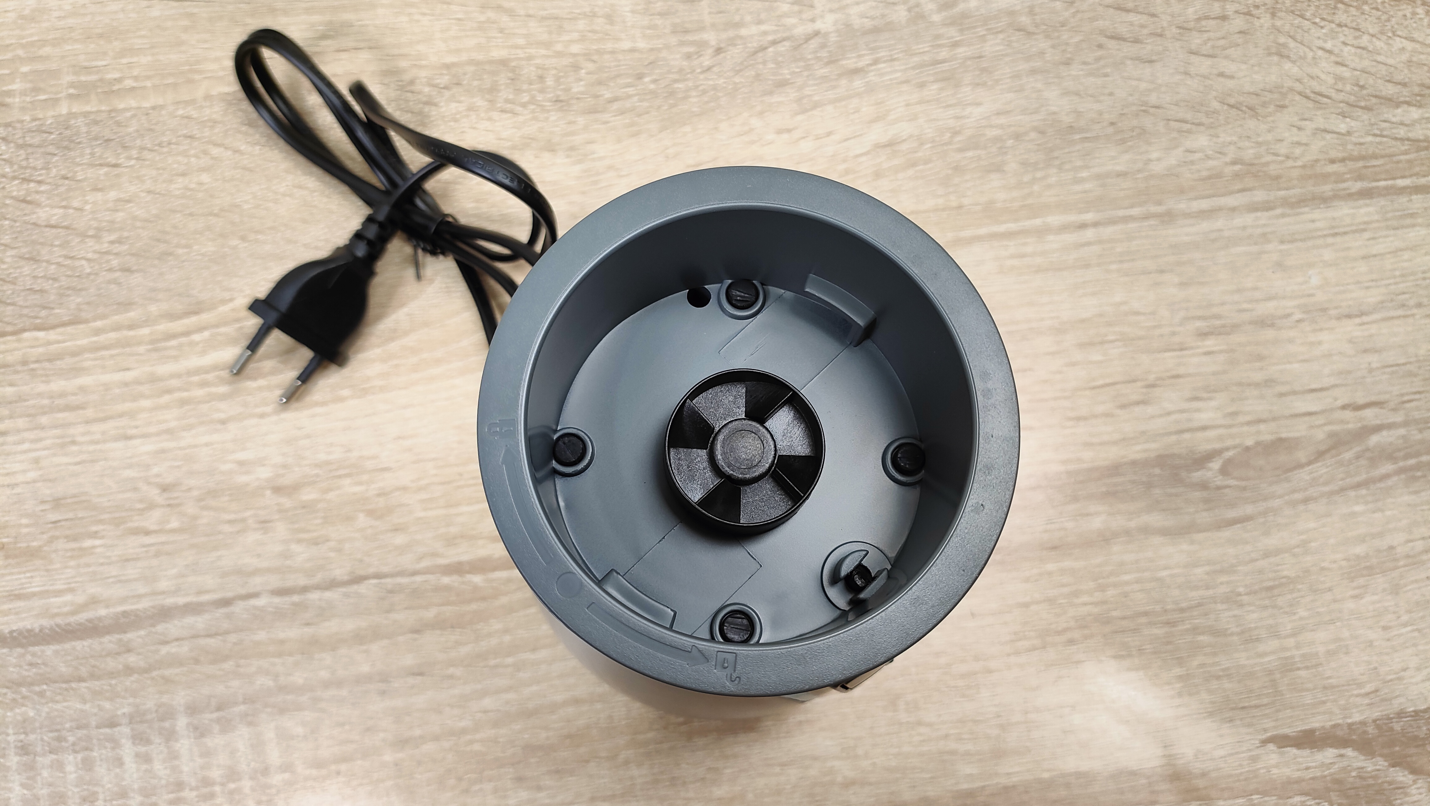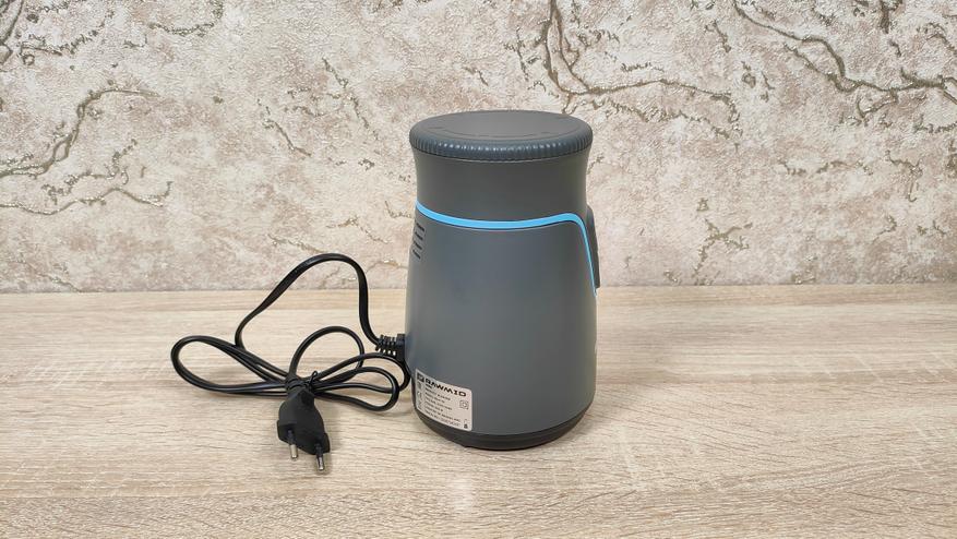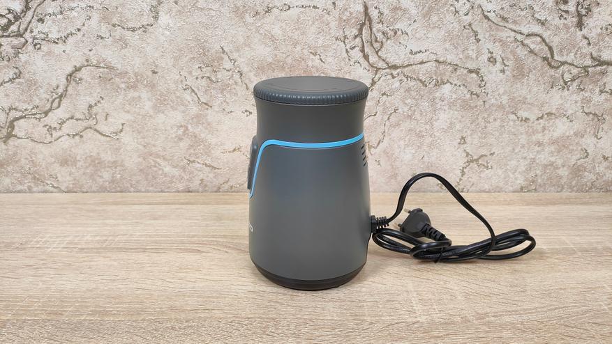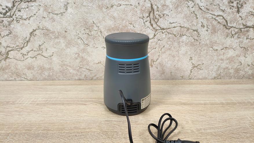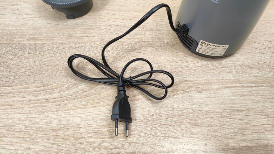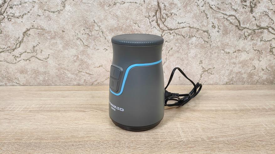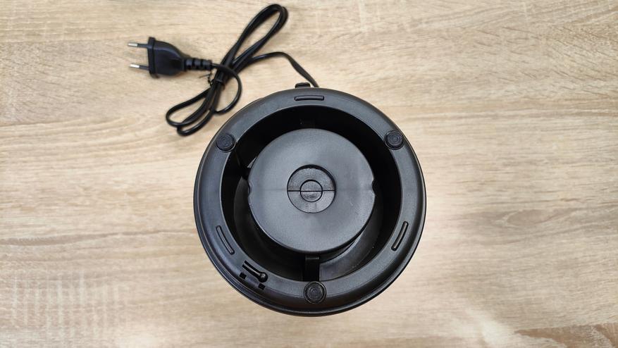 Корпус блендера небольшой, мне почему-то напомнил кофемолку, либо другую подобную мельницу. Дизайн спокойный, но не лишён некоего своего стиля, с другой стороны, это утилитарный кухонный прибор, который, как правило, лежит где-то в шкафу и ждёт своего «звёздного часа». Из органов управления здесь лишь две крупные кнопки с разной скоростью, то есть оно наипростейшее, они без фиксации, так что присутствие пользователя всё-таки необходимо при работе блендера, однако, нет необходимости держать на весу саму «тушку», как это приходится делать с ручным.