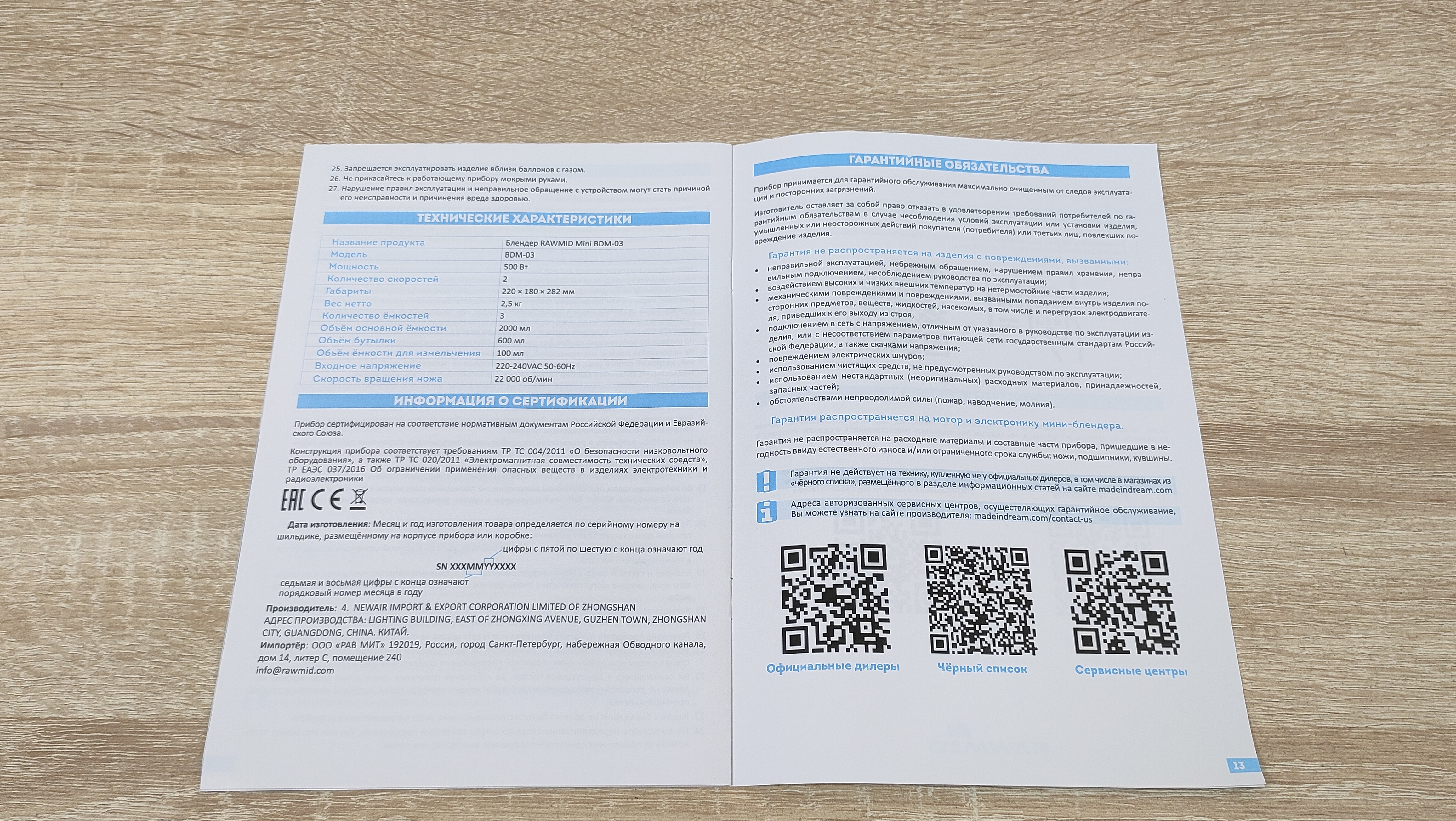 Технические характеристики RAWMID Mini BDM-03