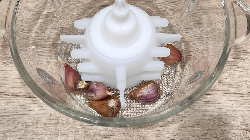 Еще в комплекте есть насадка для чистки чеснока, поэтому я отправился в магазин за ним и принимаюсь тестировать.