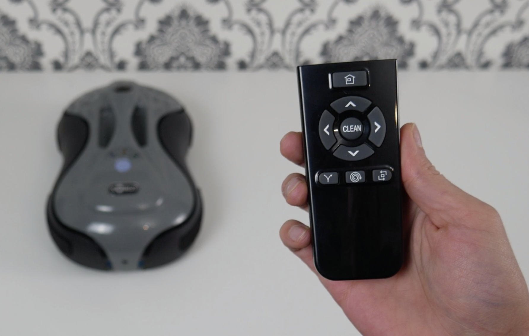 Для управления Xbot R2 предназначен пульт ДУ. С его помощью можно запустить и остановить полотёра, менять направление движения кнопками со стрелками, а также выбирать один из 4-х режимов работы: