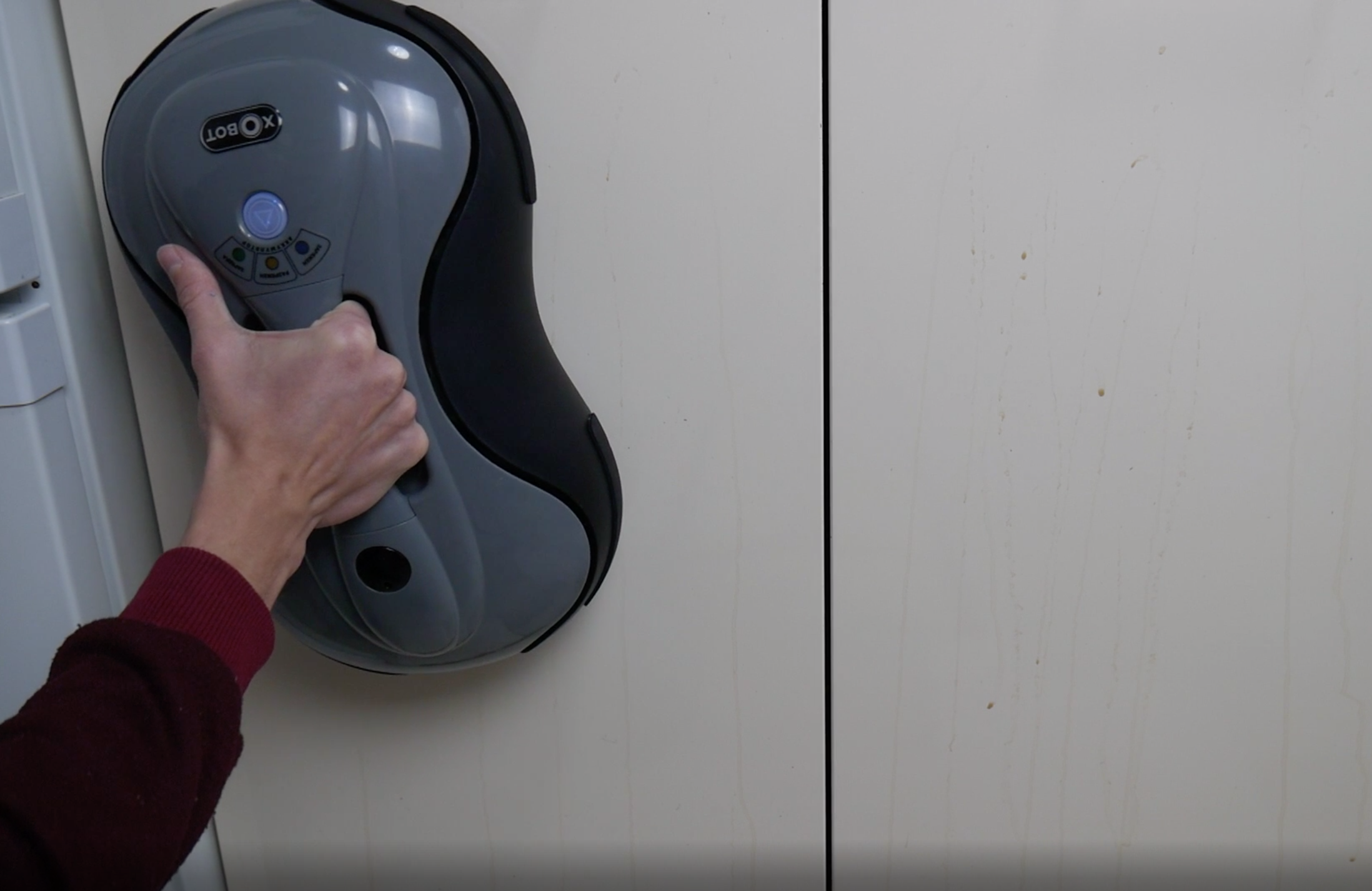 Но Xbot R2 может мыть не только горизонтальные поверхности, но и вертикальные. Так, с его помощью можно привести в порядок дверь холодильника, кафель в ванной комнате, мебель на кухне.