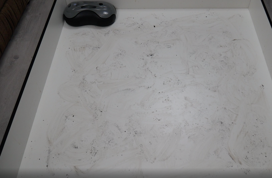 Тест №2 – свежий кетчуп и кофе. Кетчуп имеет более жирную консистенцию, поэтому оттирать его сложнее. Но только не для Xbot R2! Эффективность такая же, как в первом тесте.
