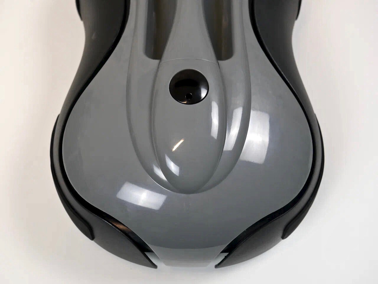 Верхняя часть корпуса серая глянцевая, бока – чёрные матовые. Практичный и стильный дизайн.
