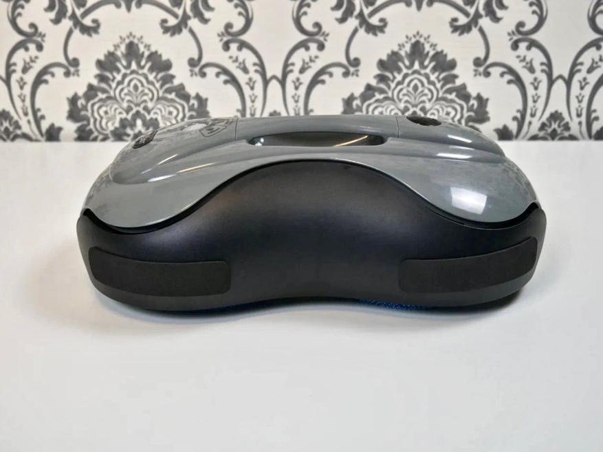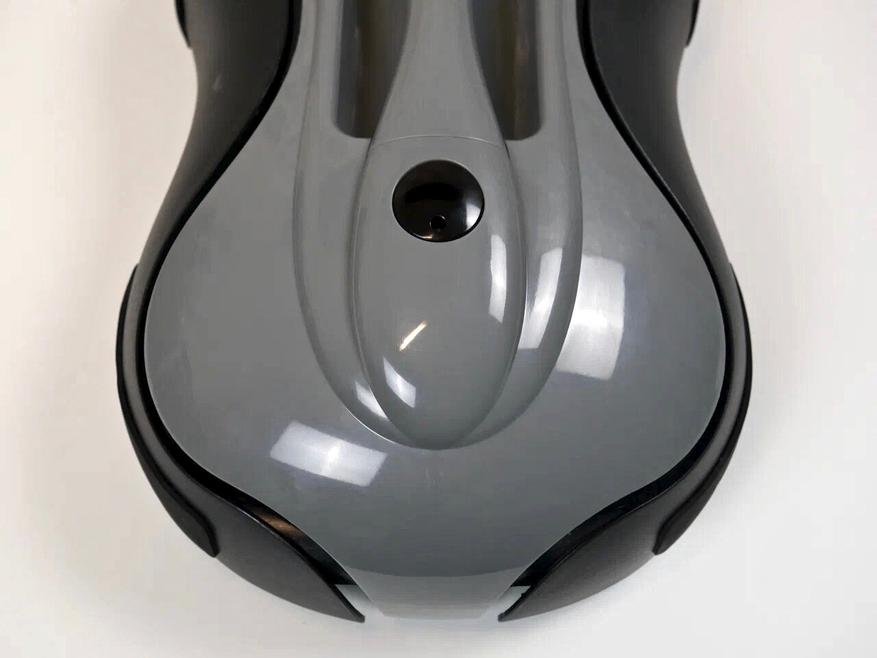 Полотёр выполнен в форме большой щётки со скруглёнными торцами и удобной ручкой. Основание имеет продолговатую форму (375 х 214 мм), а высота корпуса составляет 127 мм. Такой корпус пройдёт далеко под каждым диваном, и это нужно учитывать перед покупкой. Весит робот чуть больше 1,5 кг. Переносить его из комнаты в комнату не составит труда.
