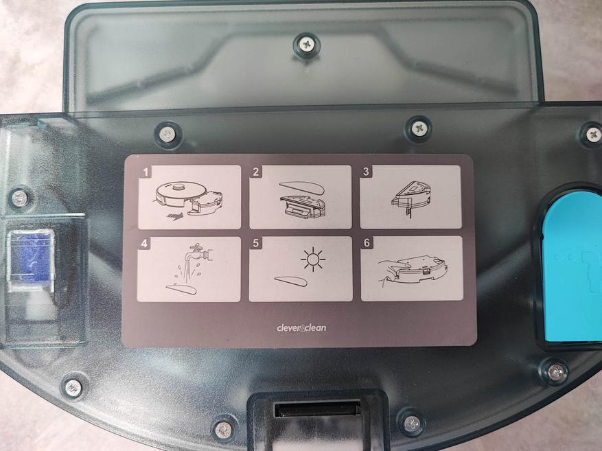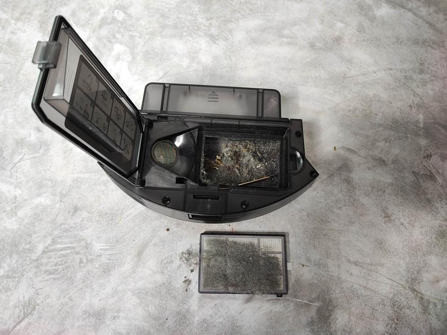 Для повышения качества уборки, контейнер для мусора нужно очищать после каждого цикла работы робота-пылесоса. Предварительный фильтр из контейнера можно промывать водой, а вот фильтр тонкой очистки HEPA очищается с помощью комплектной щётки. Накладку для влажной уборки можно стирать вручную или в машинке при 40⁰ С. Основную щётку от намотавшихся волос и шерсти можно очистить с помощью лезвия находящегося на комплектной щётки для обслуживания, этим же инструментом нужно привести в порядок и боковые щётки. Датчики и контактные площадки на док-станции и роботе-пылесосе очищаются от загрязнений с помощью обычной сухой тряпочки. Так же одним из важных пунктов ухода является то, что нельзя оставлять подключённую ёмкость для влажной уборки, когда робот находится на док-станции.