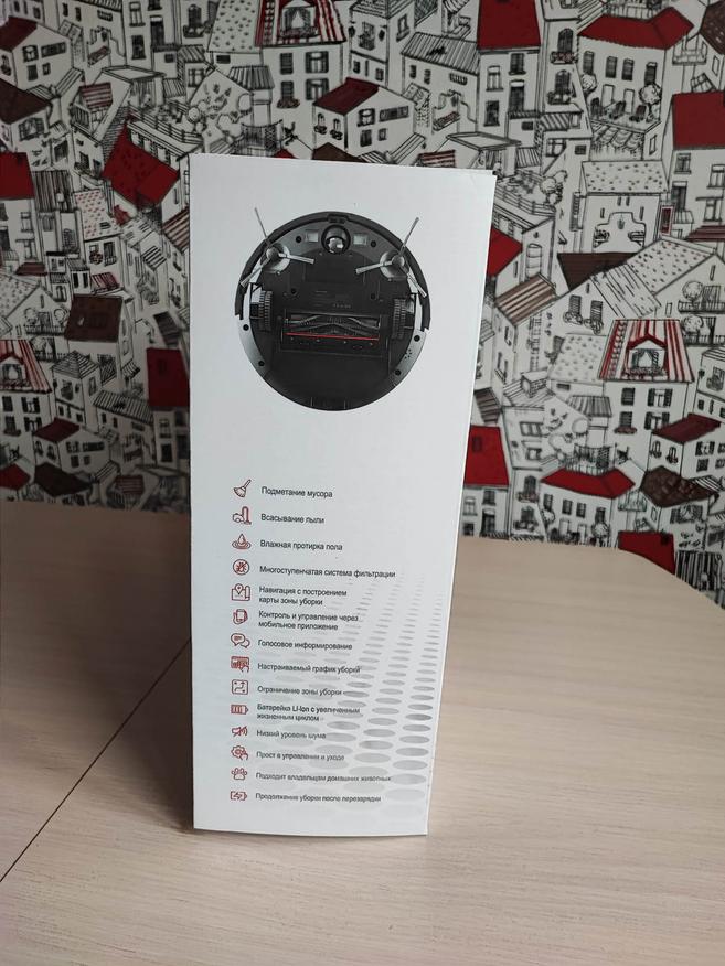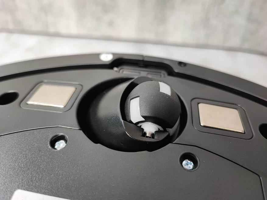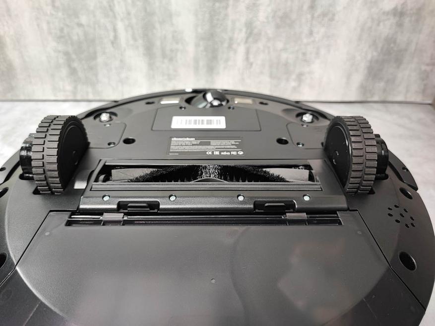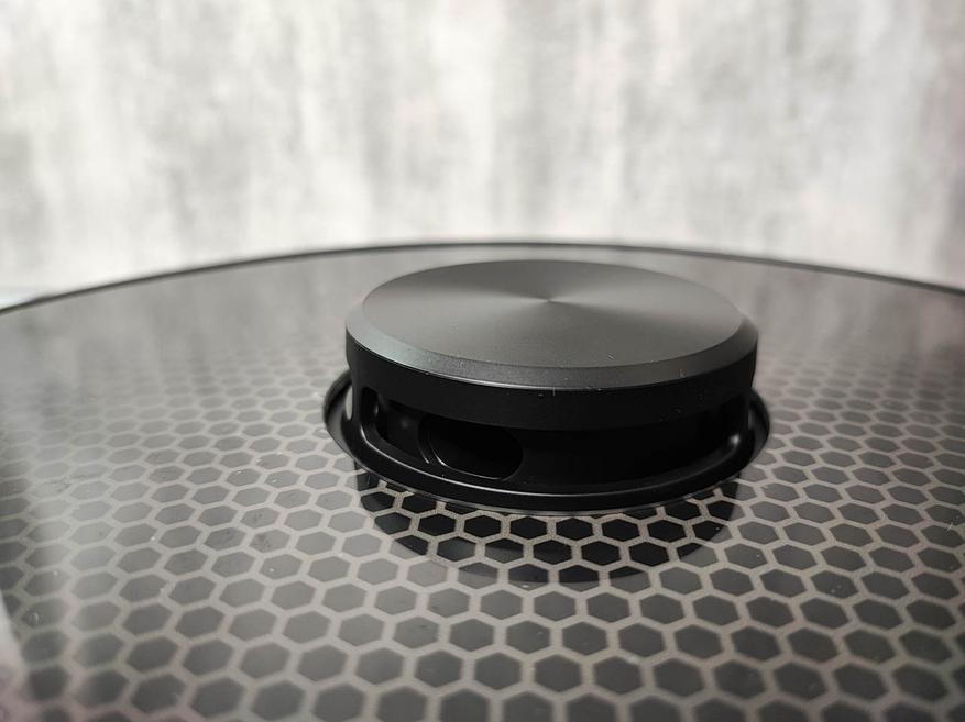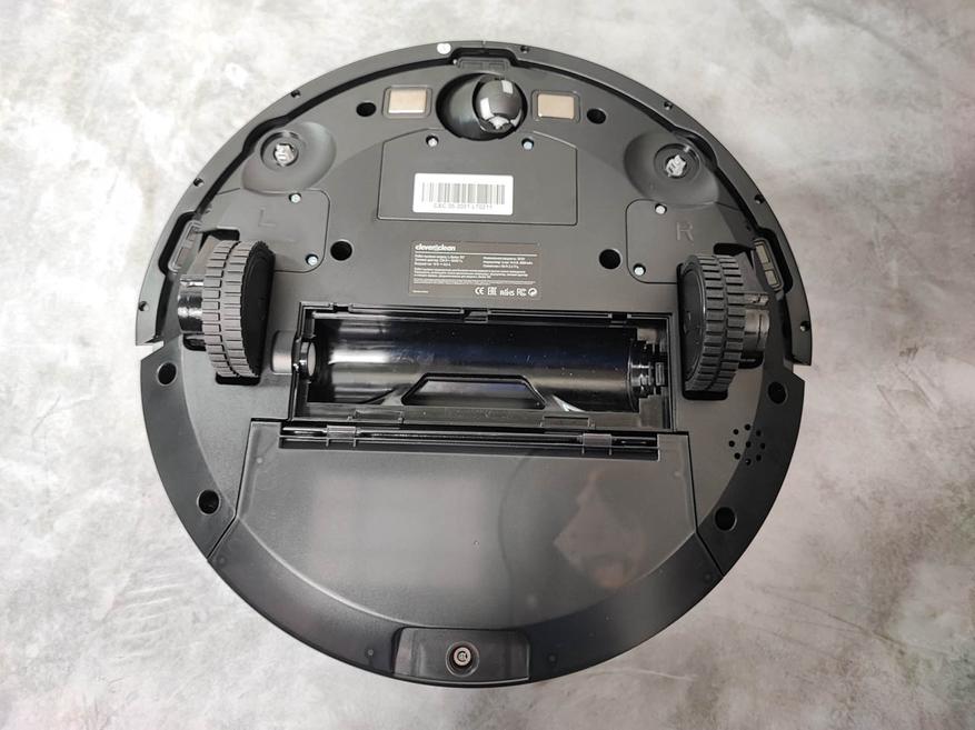 Внешне это устройство не сильно отличается от собратьев, та же форма хоккейной шайбы чёрного или белого цвета. Но если присмотреться, то можно увидеть детали, которые придают ему некоторый стиль. Верхняя поверхность имеет ещё одну «шайбочку» в которой установлен датчик лидар, а сама поверхность выглядит как немного тонированное стекло, сквозь которое просвечивается пластина с перфорацией в виде сот, но она изготовлена из смол композита. Так же на верхней панели размещены 3 кнопки для управления и подключения пылесоса. В передней части корпуса установлены амортизирующие накладки для предотвращения повреждения робота и мебели, а сзади разместился отсек для контейнера. Снизу находятся 3 колеса, с помощью которых и осуществляется его передвижение. Там же расположены и щетки, которые и убирают мусор и пыль.