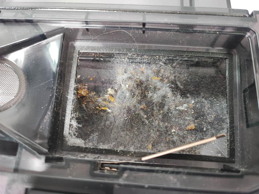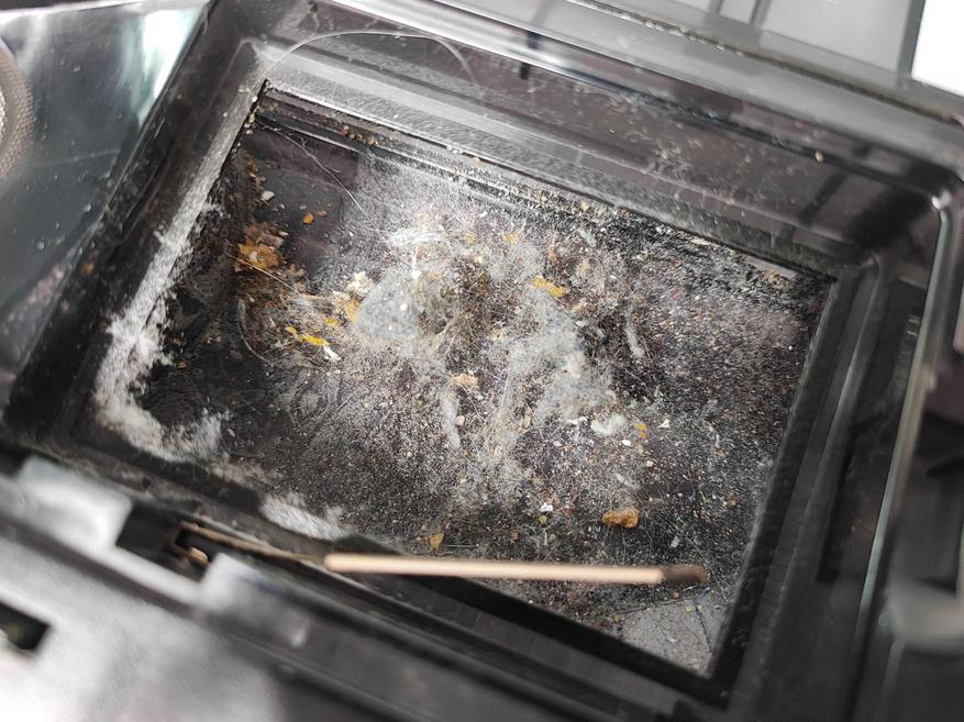 На фото ниже можно посмотреть на количество мусора после сухой уборки, на вроде бы чистой кухне:
