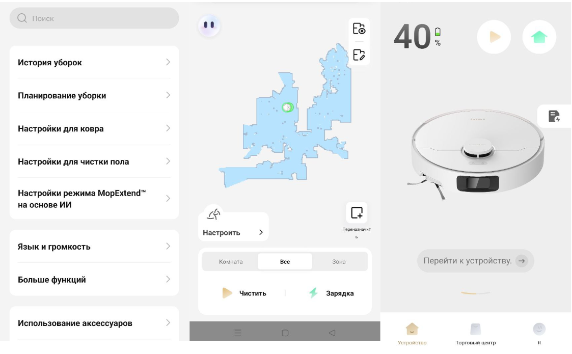 - Удобное мобильное приложение. В любой момент можно понять, где находится робот-пылесос. Можно удаленно начинать уборку.