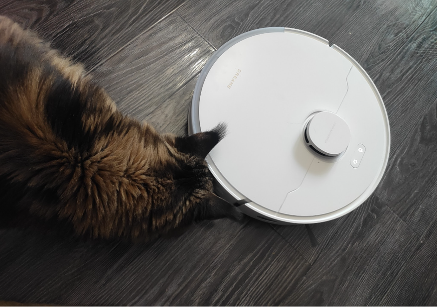 Очень нравится робот-пылесос Dreame D20 Pro котам: выдвижная щеточка — идеальная игрушка.