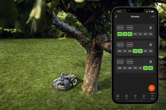 Вот только некоторые функции устройств от Husqvarna: учет погоды, контроль балансировки, отсутствие выхлопов, защита от кражи с помощью сигнализации и пин-кода, автоматическая зарядка, низкое потребление электроэнергии, таймер, датчики подъема и наклона, автоматическая обработка прохода, электрическая регулировка высоты и пр.