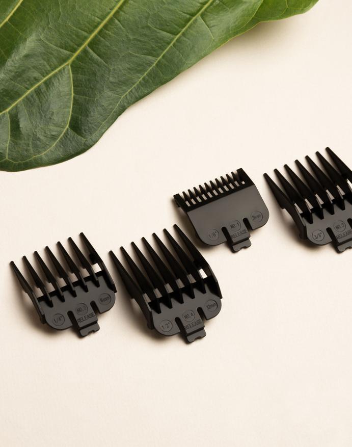 В комплекте поставки каждой машинки для стрижки находятся сменные гребни — от самых маленьких для детальной стрижки бороды и усов до крупных для стрижки волос на голове и теле. Есть ручная регулировка длины отступа лезвия с помощью рычага.