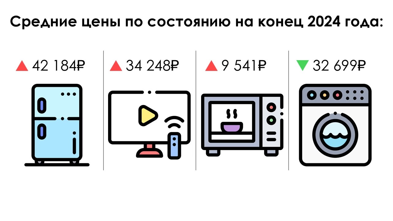 В 2025 году цены на крупную бытовую технику в России могут вырасти на 5-15% из-за инфляции, роста логистических затрат и нестабильности курсов валют. Однако в сегменте низкобюджетной техники возможны снижения цен, что не может не радовать потребителей. Производители оптимизируют процессы, что может привести к удешевлению некоторых моделей на 3-7%.
