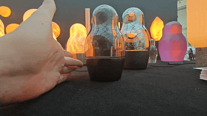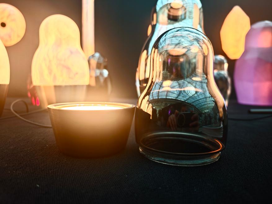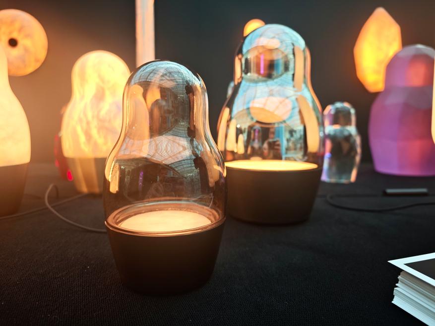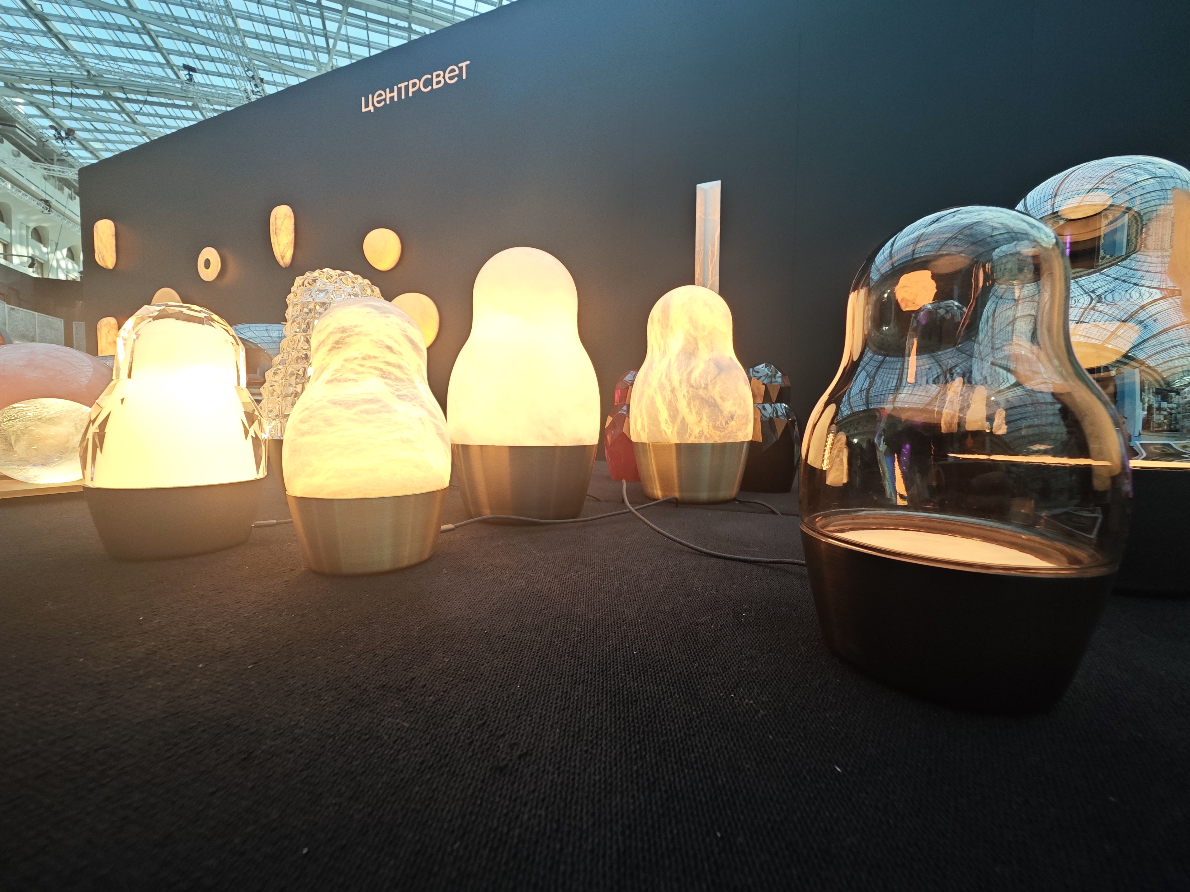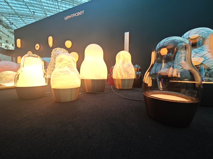 Матрешки демонстрировали на стенде «Центрсвет», и, как можно судить по сайту, специализируется компания на домашнем и уличном освещении, как искусственном, так и естественном (в каталоге есть и свечи). Искусственное в свою очередь делится на крупные, встраиваемые решения и вот на такие интерьерные «арт-продукты».